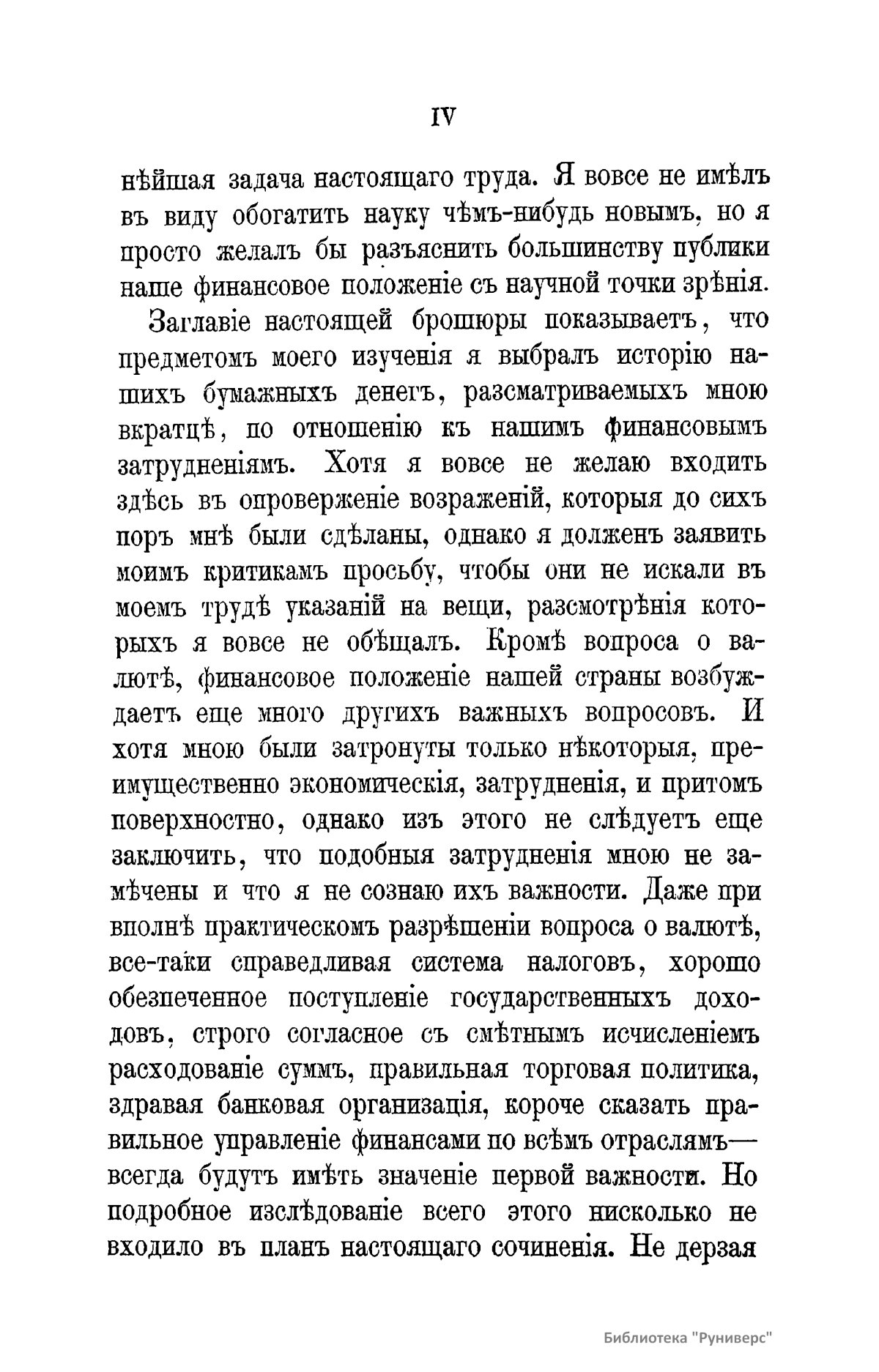 Справедливая система налогов, хорошо обеспеченное поступление государственных доходов, строго согласное со сметным исчислением расходование сумм, правильная торговая политика, здравая банковская организация, короче – правильное управление финансами по всем отраслям – всегда будут иметь значение первой важности для государства. Автор настоящего финансово-исторического очерка не ставит перед собой задачу исследовать все эти вопросы в полном объеме. Он выбирает предметом своего изучения историю русских бумажных денег по отношению к финансовым затруднениям его времени. Отдельно рассматривается вопрос о валюте, указывается на то значение, какое он имеет для банковских учреждений, а также на некоторые экономические вопросы, и делается вывод в пользу финансовой реформы. Автор доказывает, что прежде всего должен быть разрешен вопрос о валюте и восстановлена рациональная денежная система, после чего могут быть устранены и прочие затруднения существующего финансового положения.