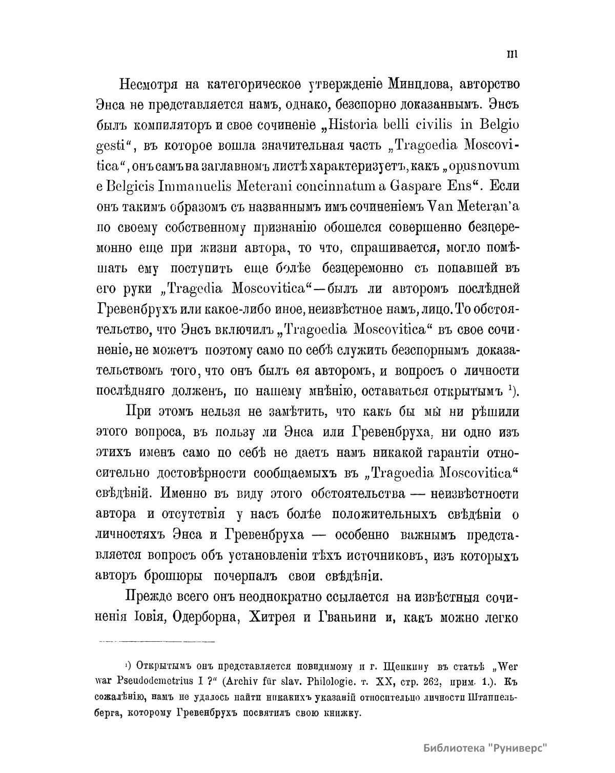 Настоящее издание представляет собой перевод вышедшей в 1608 г. в Кёльне анонимной брошюры. Это одно из первых появившихся в Западной Европе произведений, посвященных описанию событий Смутного времени в России (конец XVI – начало XVII века). Автор, используя многочисленные источники, рассуждает о различных распространявшихся в то время слухах, и о том, что вопрос о личности Дмитрия должен остаться открытым. Текст опубликован параллельно на русском и латинском языках.