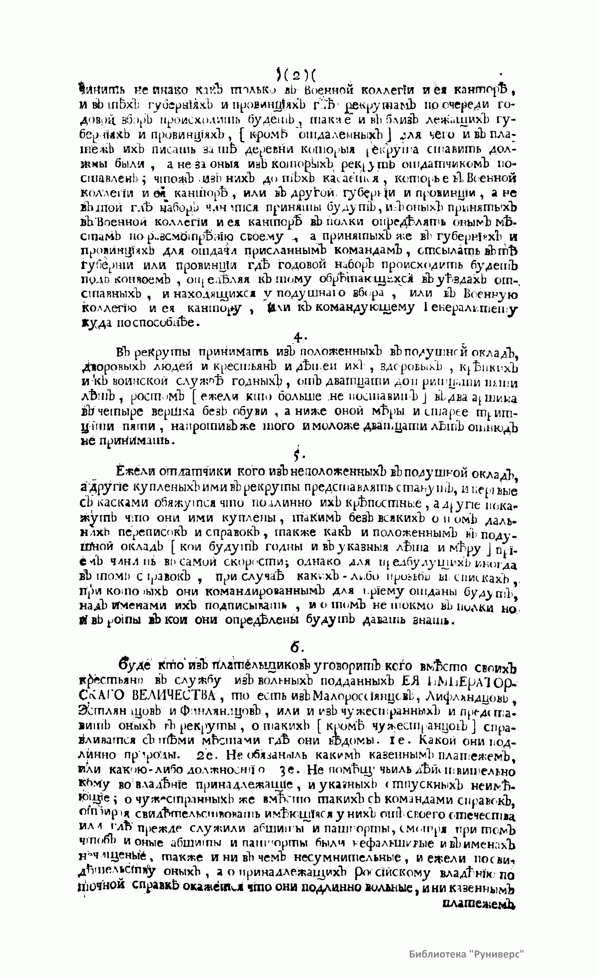 Генеральное учрежденiе. О ежегодномъ зборѣ съ государства рекрутъ, о командированiи для прiема оныхъ конвоевъ, и во отвращенiе всякихъ при томъ неполезностей, о штрафахъ и наказанiяхъ за вины, кто какъ въ приемѣ такъ и въ отдачѣ неистинною поступать будетѣ