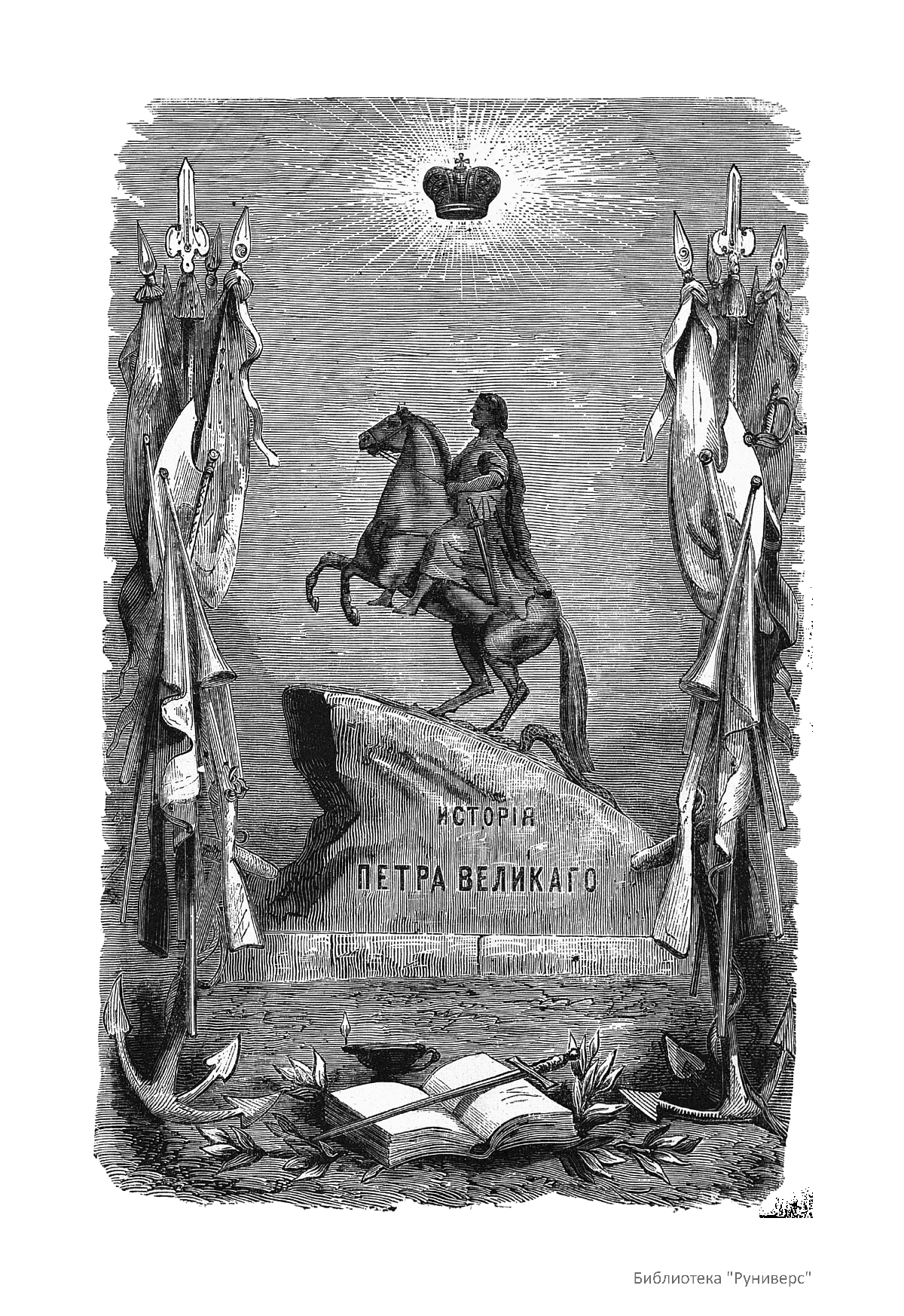Обстоятельная история Петра Великого для юношества, составленная автором по Голикову, Устрялову и Соловьеву, с 12 рисунками Г. Пилатти: 1. Купцы с поклоном подносят подарки (21). 2. Раскольники в Грановитой палате (55). 3. Петр Великий на железном заводе (167). 4. Петр Великий на корабельной верфи в Саардаме (191). 5. Петр изучает корабельную архитектуру (211). 6. Первая морская удача в устьях Невы (293). 7. Петр Великий закладывает Санкт-Петебрург (299). 8. Осада Нарвы (323). 9. Полтавская битва (379). 10. Портрет Петра (407). 11. Петр спасает погибающих (443). 12. Кабинет в домике Петра Великого (589).