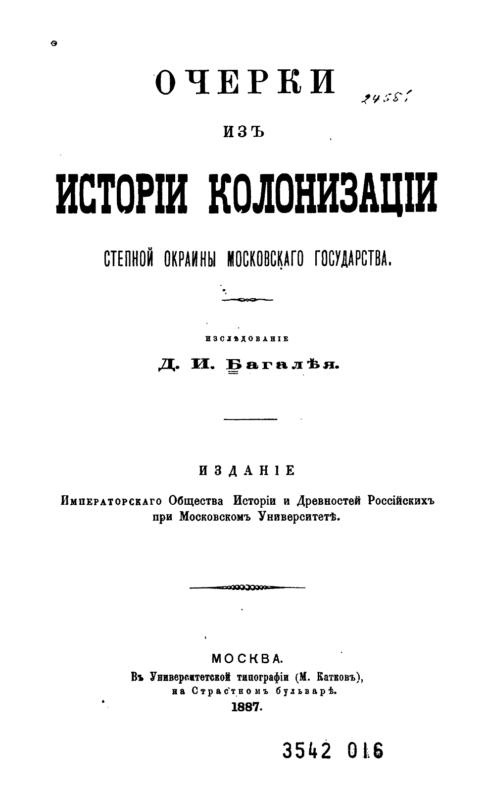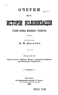 Очерки из исторiи колонизацiи степной окраины Московскаго государствa