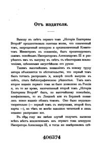 Гнев императора вызвали опубликованные Бильбасовым материалы о перевороте 1762 г. и гибели свергнутого с престола Петра III. Несмотря на то, что Бильбасов, используя все доступные отечественные и зарубежные источники, доказывал невиновность Екатерины в смерти мужа, раскрытие многих подробностей жизни императорской фамилии было сочтено неподобающим. Автору пришлось пойти на значительные сокращения и изъятия из своего труда, чтобы книга увидела свет. В последующий годы читательский интерес к запрещенной книге не ослабевал. И наконец, в 1900 году труд Бильбасова был издан в Берлине на русском языке в полной авторской редакции без цензурных пропусков.