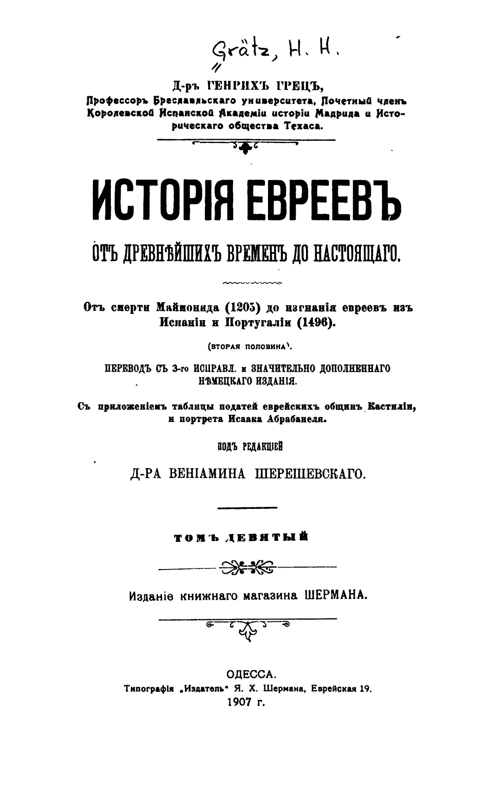 История евреев от древнейших времен до настоящего. Том девятый. От смерти Маймонида (1203) до изгнания евреев из Испании и Португалии (1496) (Вторая половина)