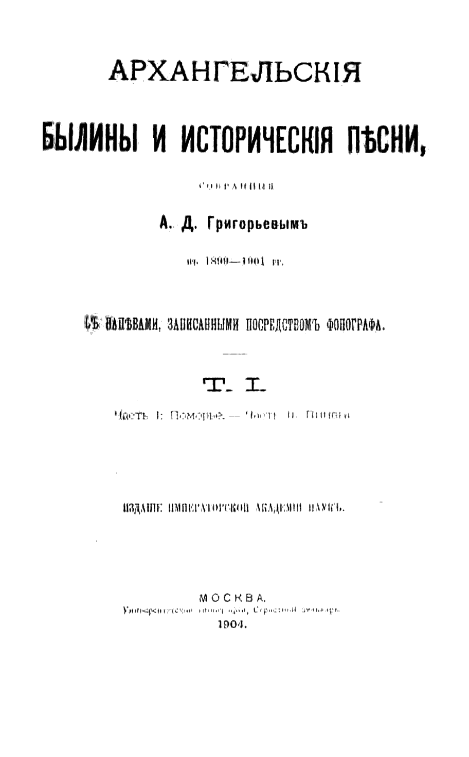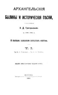 Архангельскiя былины и историческiя пѣсни, собранныя А.Д.Григорьевымъ въ 1899-1901 гг