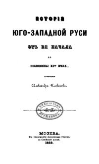 Исторiя Юго-Западной Руси отъ ея начала до половины XIV вѣка