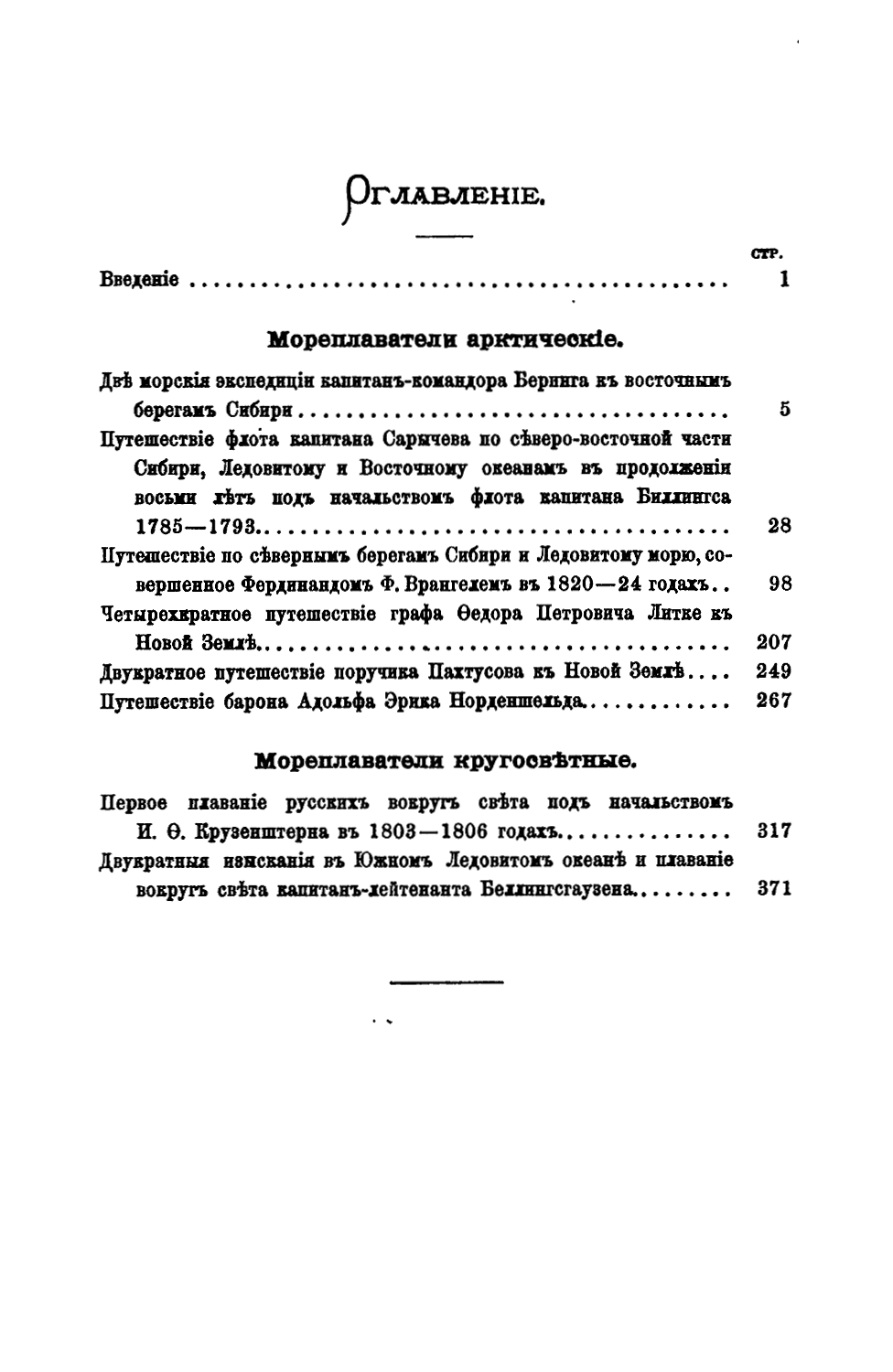 Русскiе мореплаватели арктическiе и кругосвѣтные. Путешествiя В. Беринга, Г. Сарычева, Ф.П. ф.-Врангеля, гр. Ф.П. Литке, Пахтусова, А.Э. Норденшельда, И.Ѳ. Крузенштерна и Ѳ.Ѳ. Беллинсгаузена