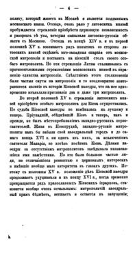 В своей небольшой, но насыщенной фактами работе известный писатель и богослов В.П. Рыбинский детально изучает судьбу Киевской мирополичьей кафедры в период, когда Киев утратил свое главенствующее положение среди русских городов. Нашествие Батыя, а затем отпадение Киевского княжества от Северо-Восточной Руси, где сосредоточилась политическая и духовная жизнь страны привели к тому, что уже с XIII века митрополиты удалились из города. Присоединение Киева к Литовскому государству также не способствовало возрождению духовного центра. Литовские князья добились независимости киевской митрополии от Москвы, однако и теперь митрополиты продолжали управлять кафедрой через своих наместников, приведя к концу XVI века дела Киевской митрополии к полному разорению…