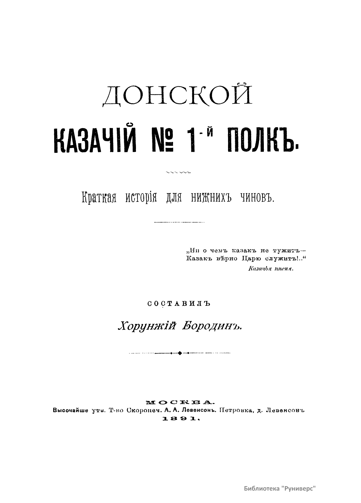 Донской казачiй № 1-й полкъ