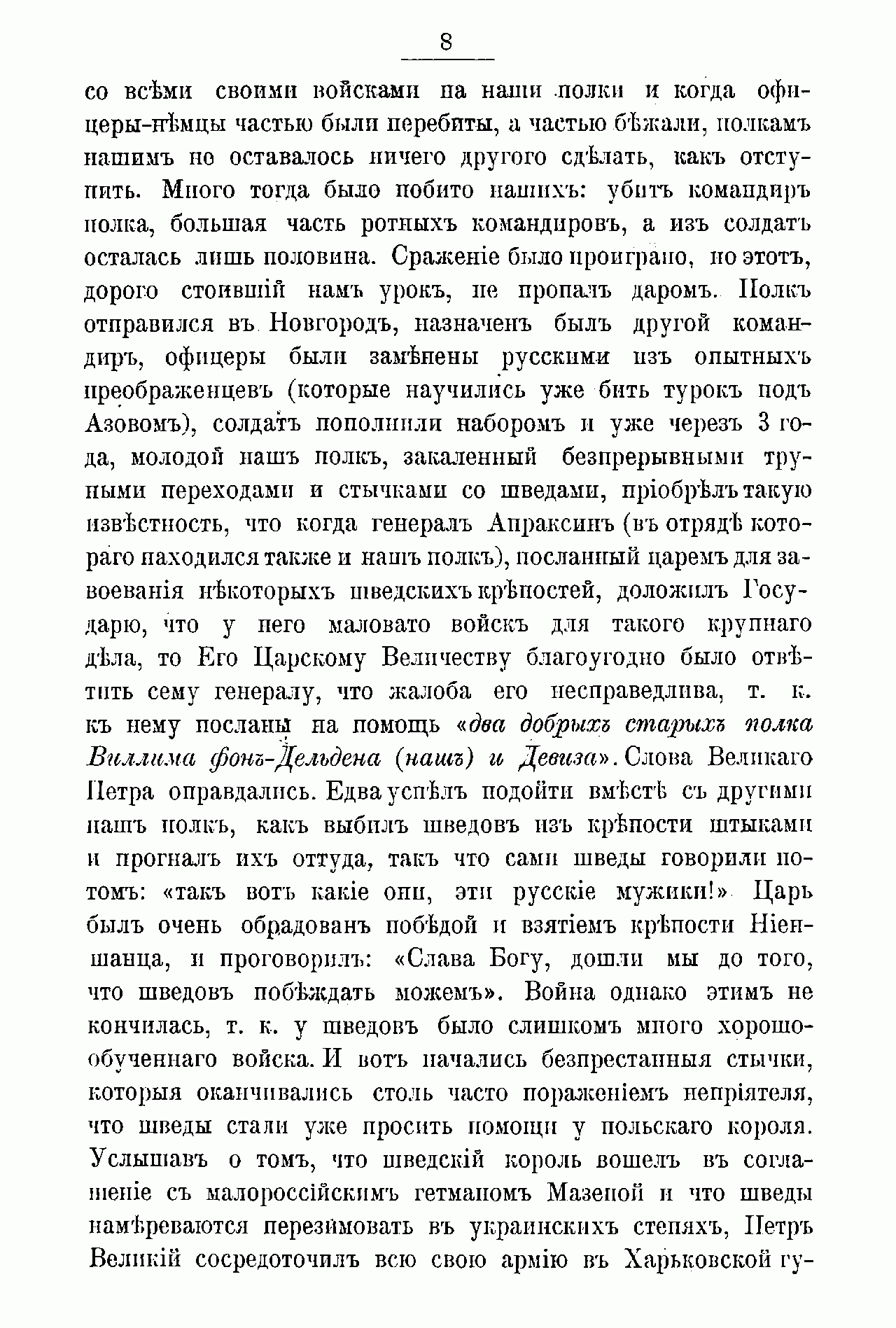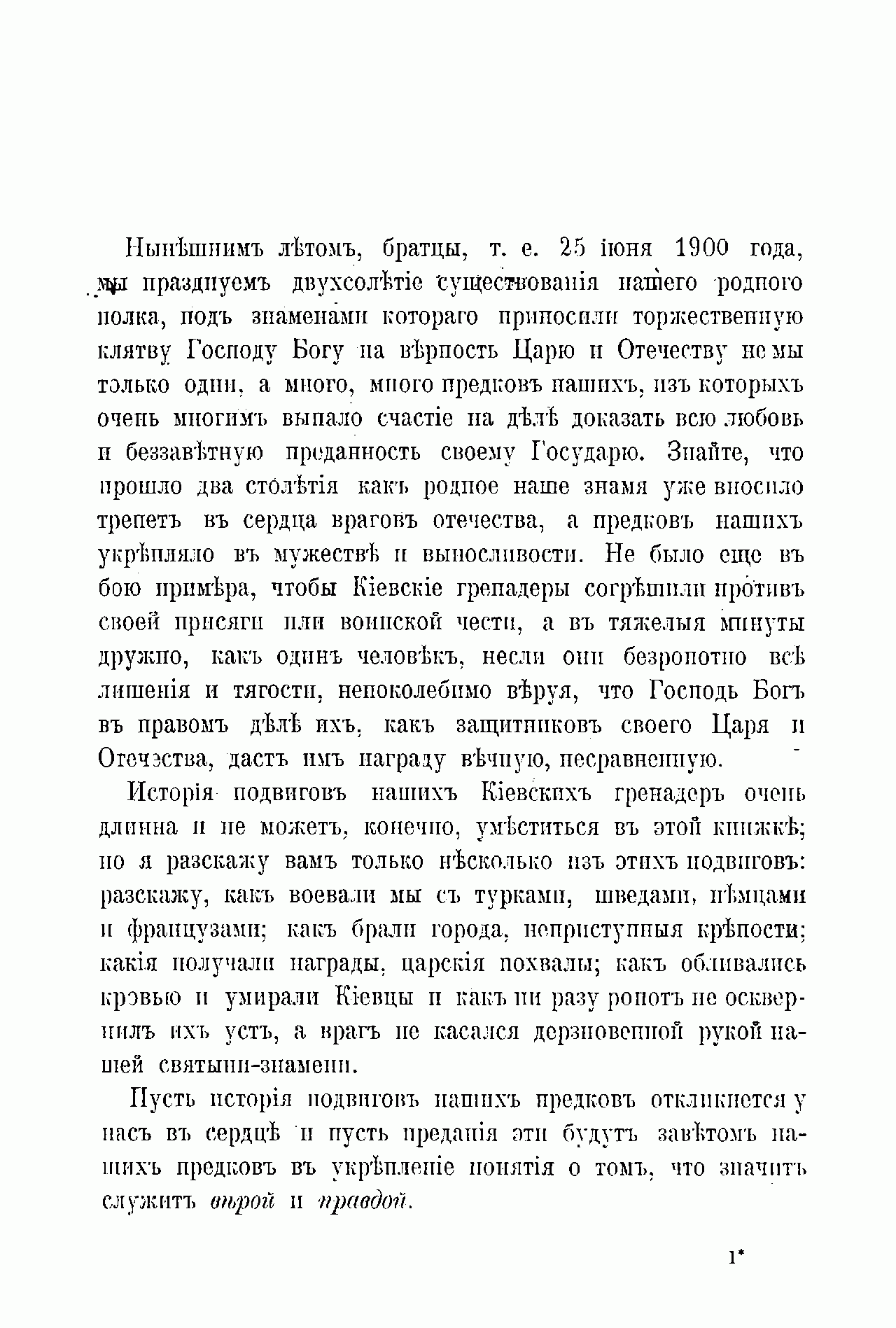 Памятка подготовлена в преддверии 200-летнего юбилея полка, старшинство которого велось с 1700 г., когда полк, наряду с другими 27-ю первыми петровскими полками, был сформирован как солдатский полковника Вилима Вилимовича фон Дельдена. Полк принимал участие в большинстве крупнейших войн и походов России XVIII-XIX вв., о чём вкратце и повествуется в данной памятке. С 1785 г. полк стал называться Киевским гренадерским, а с 1801 г. вошёл состав 2-й гренадёрской дивизии. Особенностью данного издания является небрежность в его подготовке к печати (имеется ряд неточностей и опечаток).
