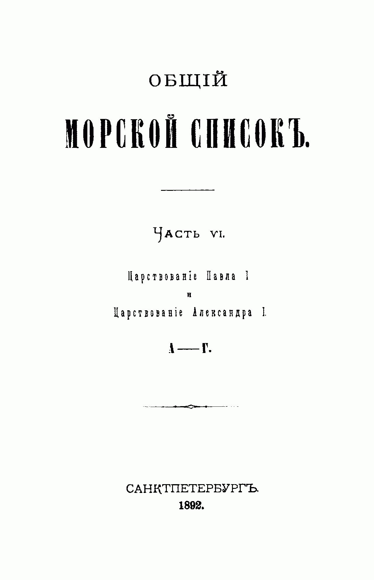 Общiй Морской списокъ Часть VI. Царствованiе Павла I и царствованiе Александра I. А-Г