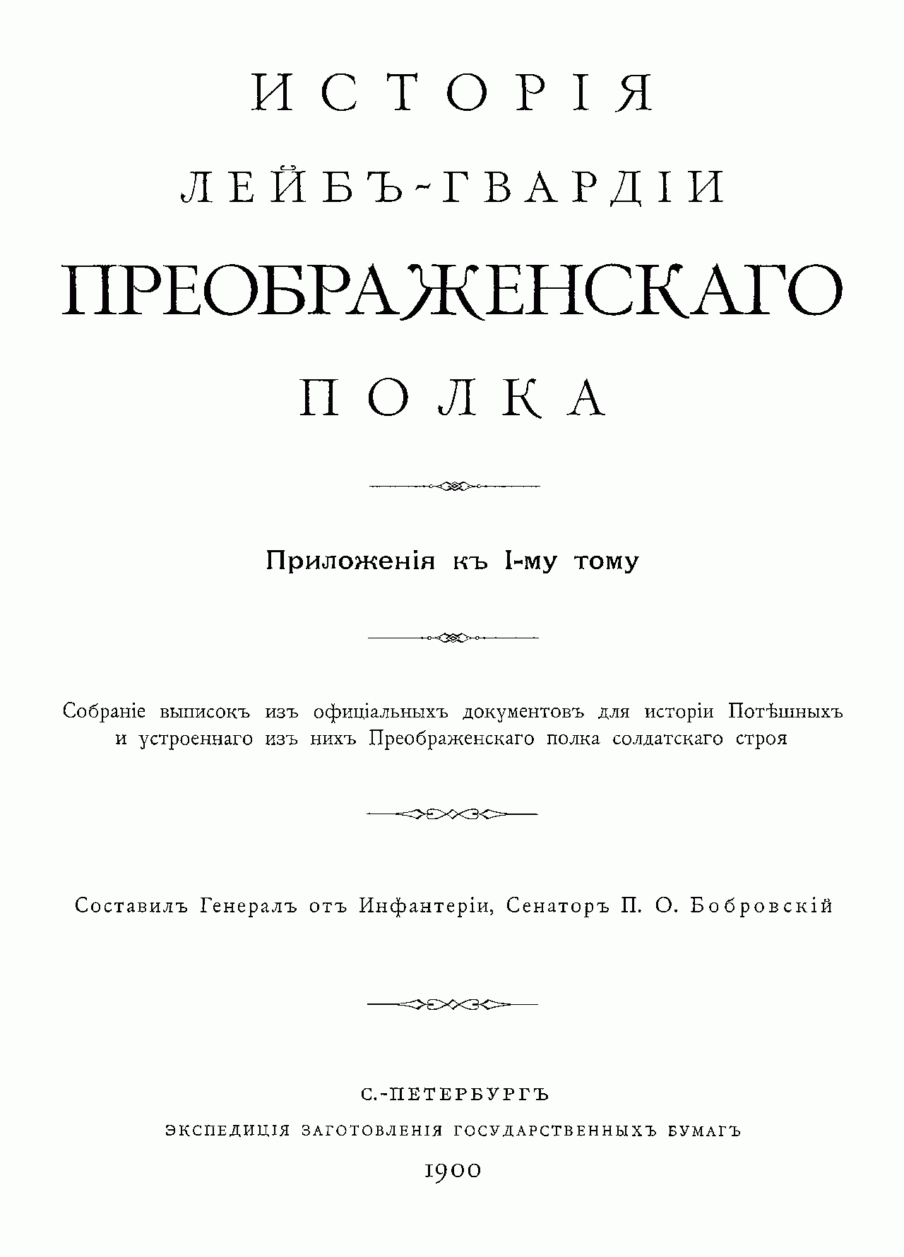 Исторiя Лейбъ-гвардiи Преображенскаго полка. Приложенiя к I-му тому