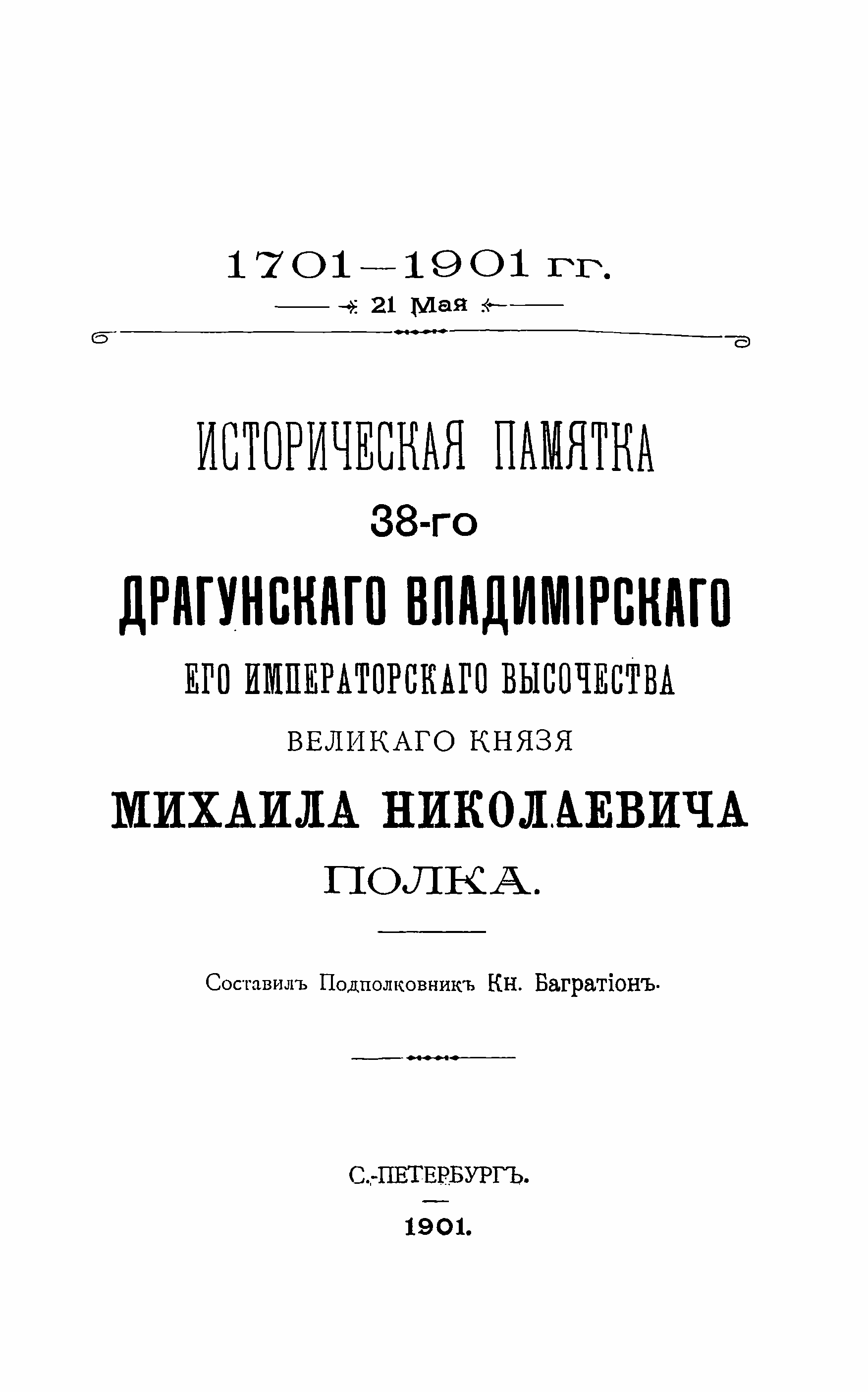 Историческая памятка 38-го Драгунскаго Владимiрскаго Его Императорскаго Высочества Великаго Князя Михаила Николаевича полка