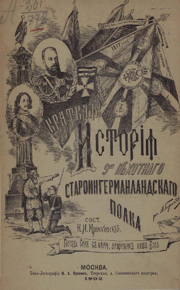 Краткая исторiя 9-го пѣхотнаго Староингерманландскаго Генерала-Фельдмаршала Князя Михаила Голицина полка. Для нижнихъ чиновъ 1703-1892 г.