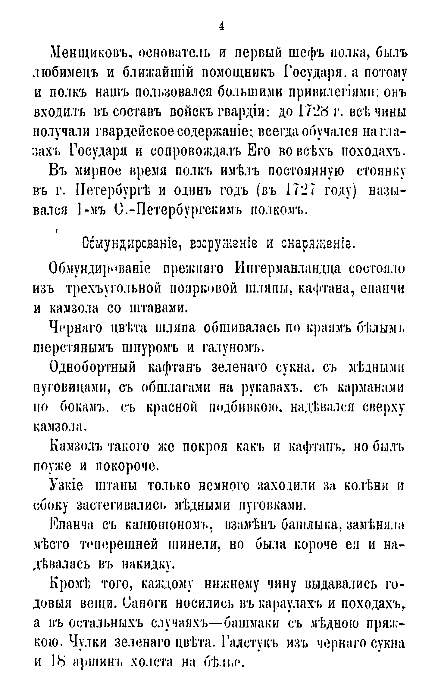 Документальное описание боевых действий полка и знаменательных исторических событий, связанных с ним, за период 1703 – 1892 годов. Приведены поименные списки ше-фов и командиров полка, офицеров – кавалеров различных наград, нижних чинов, на-гражденных знаком отличия Военного ордена, с указанием номеров знаков.