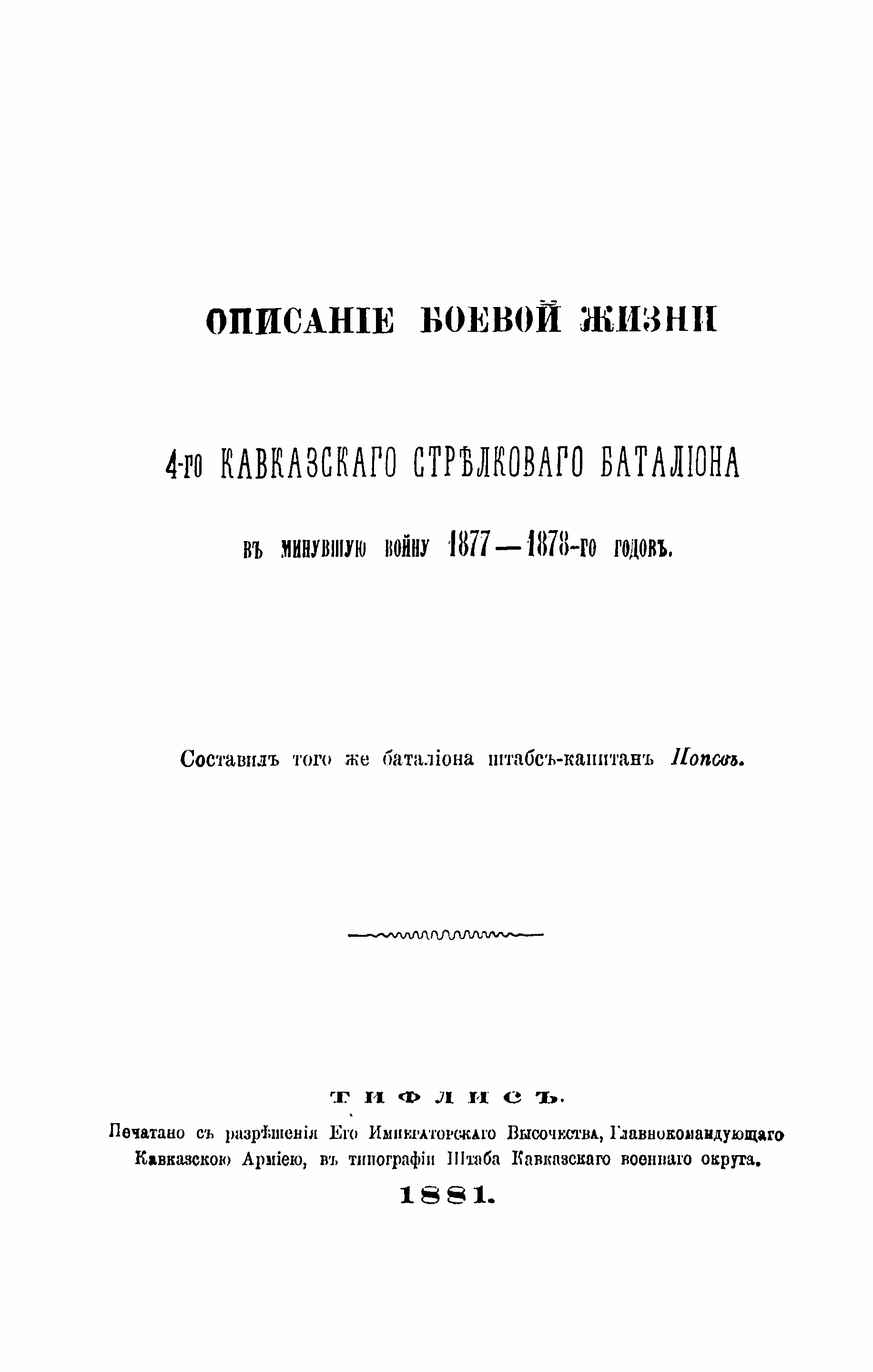 Описанiе боевой жизни 4-го Кавказскаго стрелковаго баталiона в минувшую войну 1877-1878-го годовъ