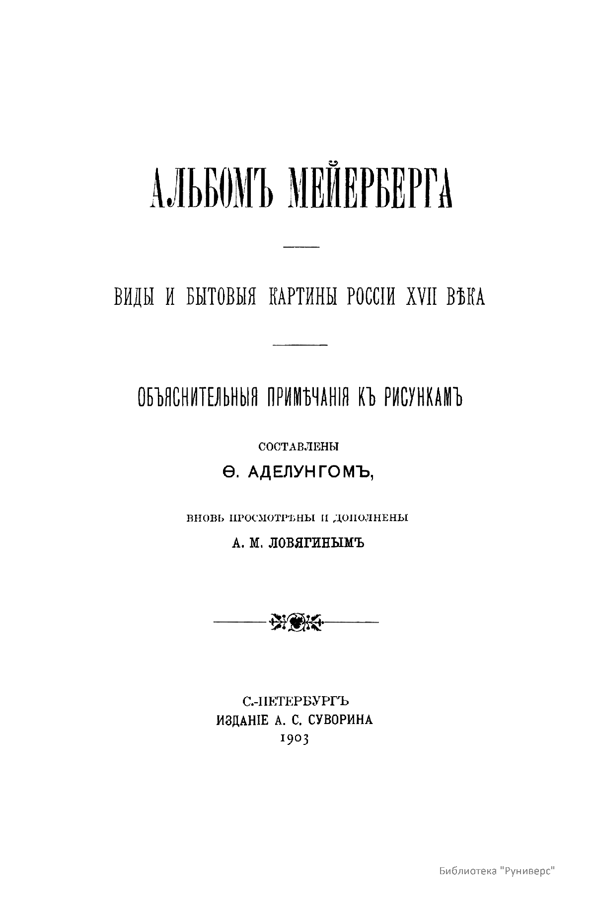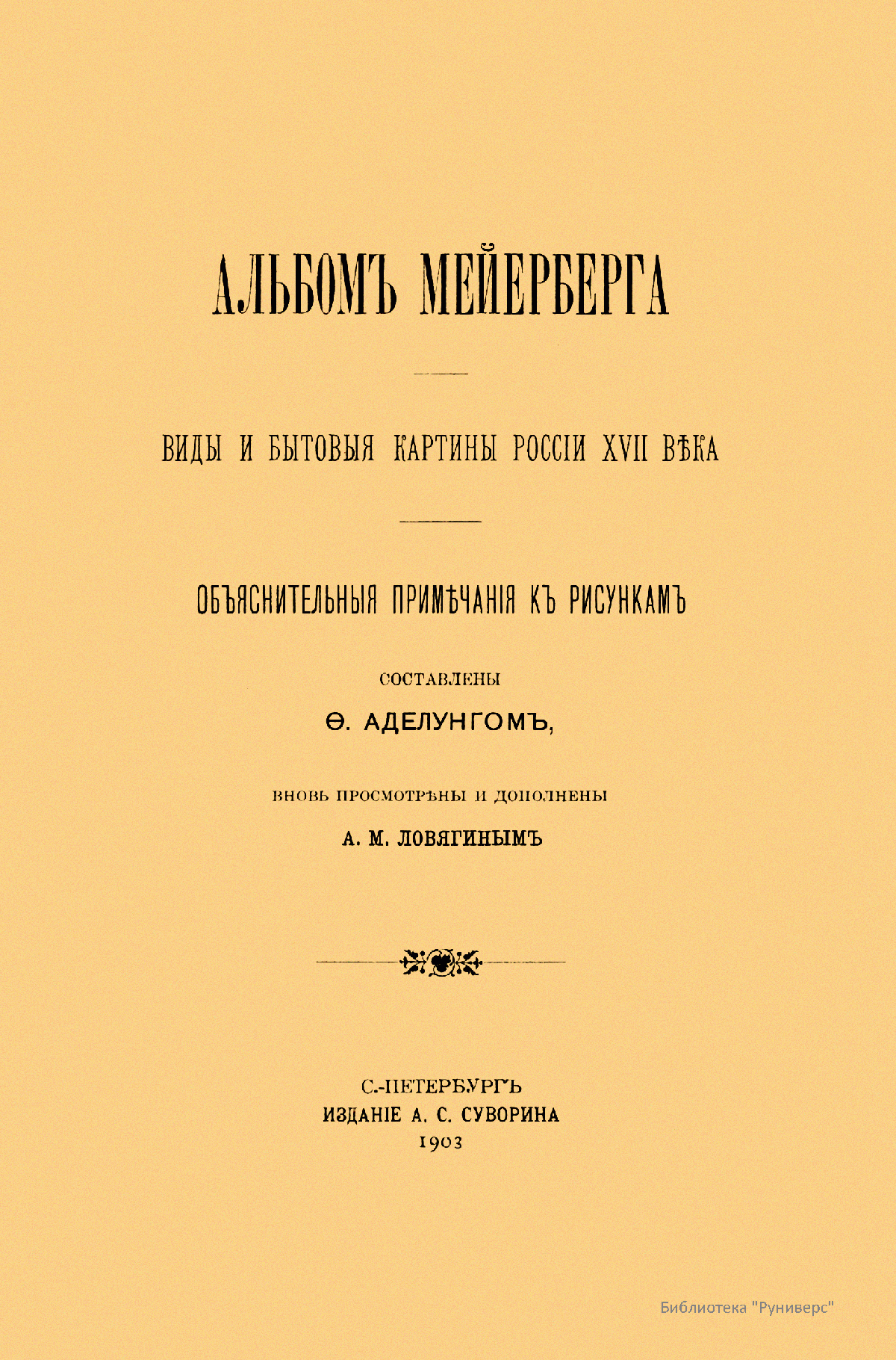 Альбомъ Мейерберга. Виды и бытовыя картины Россiи XVII вѣка. Объяснительныя примѣчанiя къ рисункамъ
