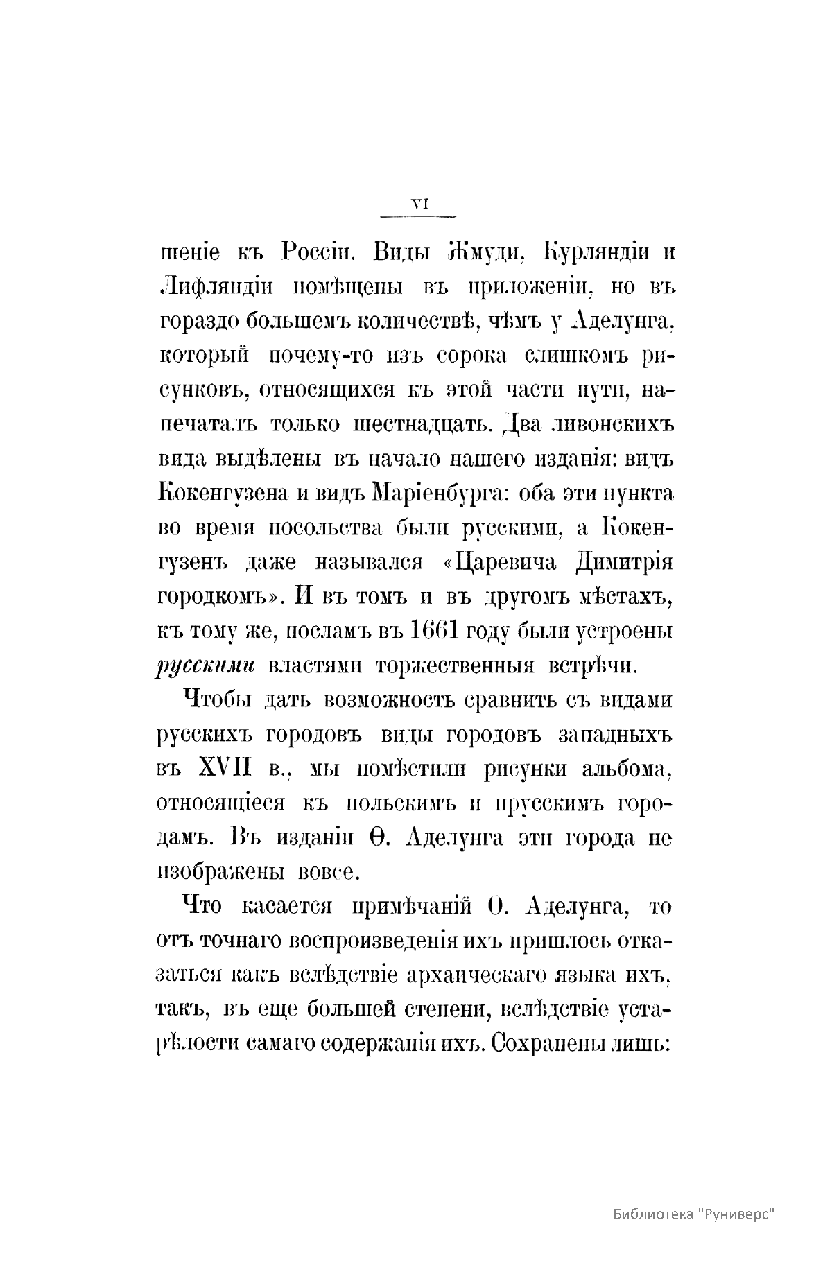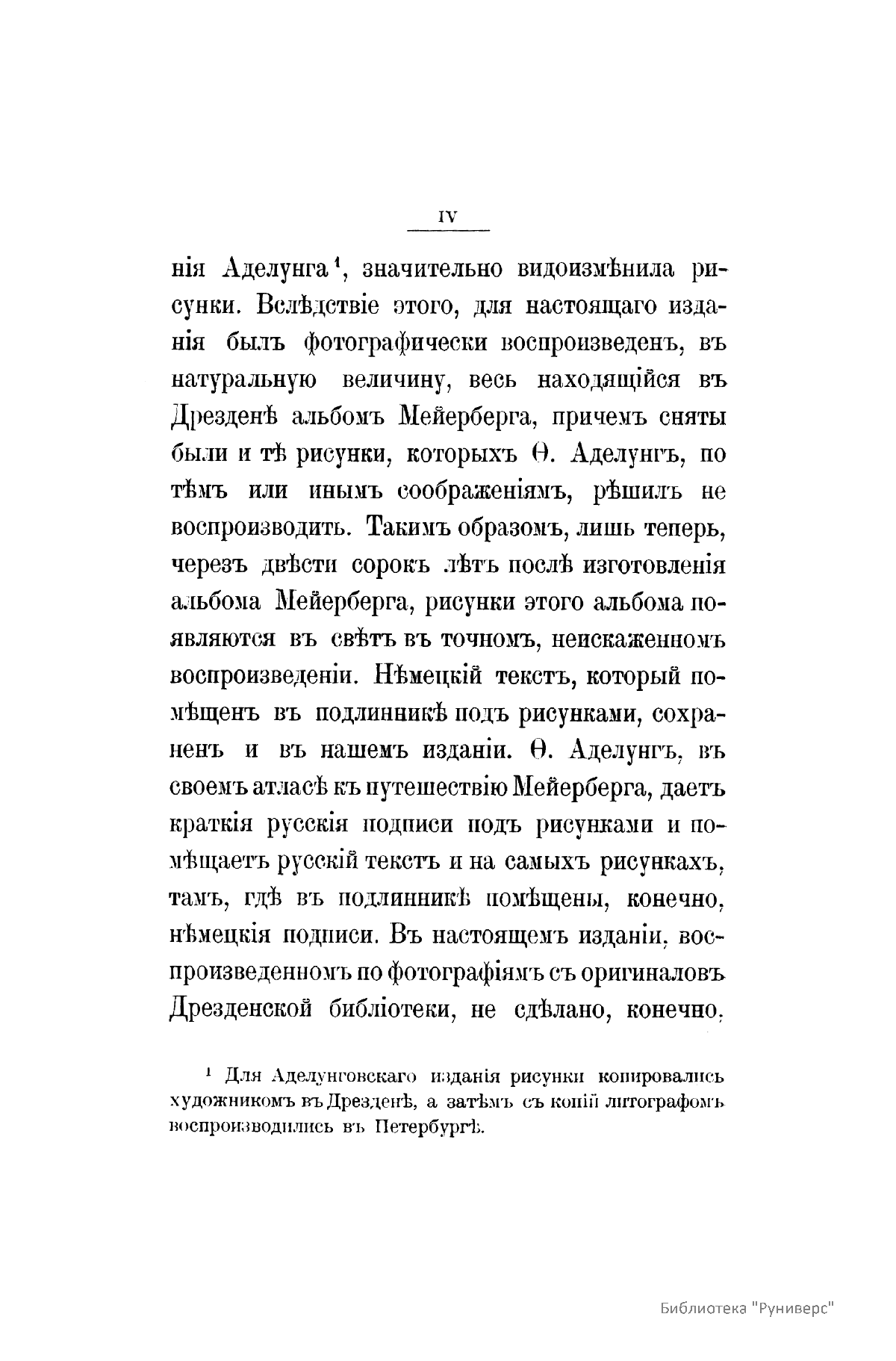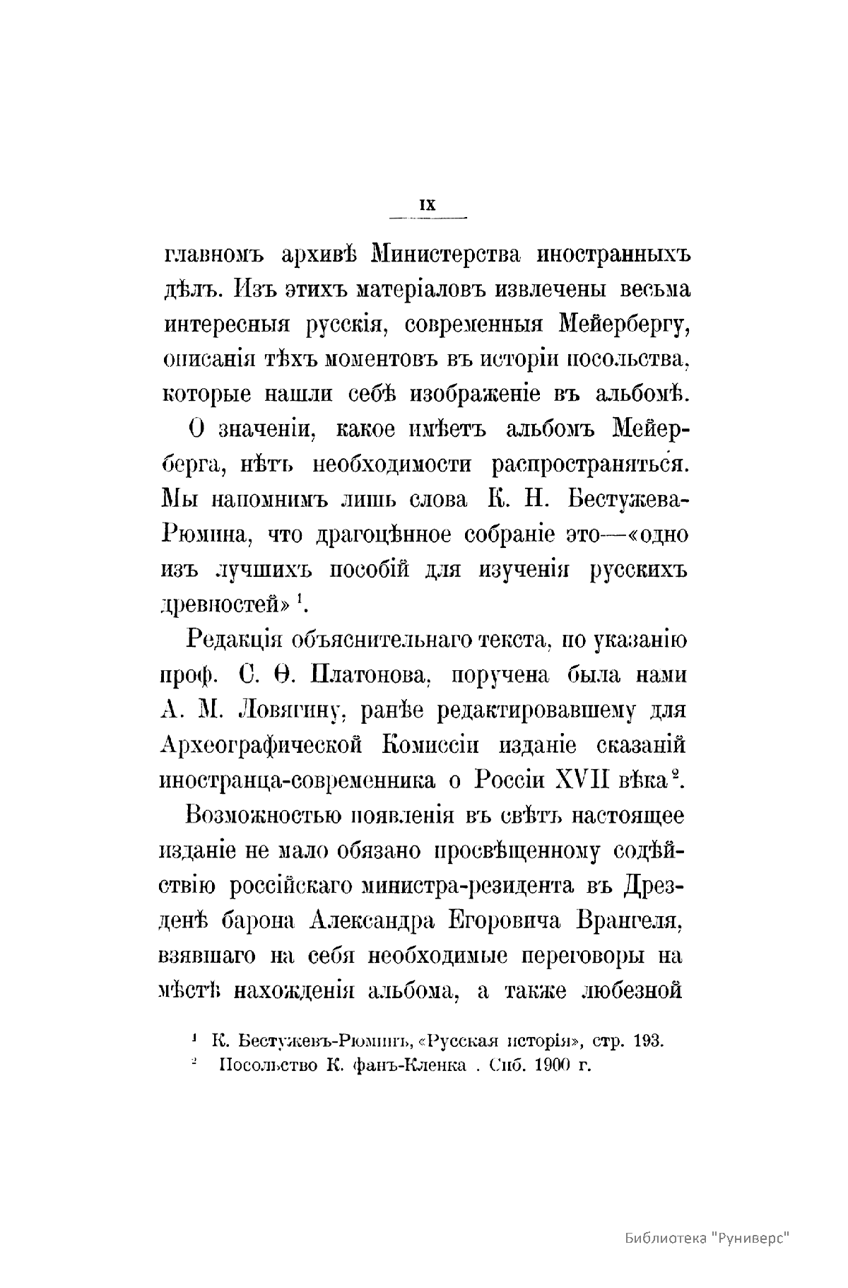 В библиотеке «Руниверс» находится только та часть альбома, куда входят «Сведения о посольстве и об исторических трудах Мейерберга» и «Объяснительные примечания к рисункам». Географические названия местностей, упоминаемых в альбоме, проверены по «Спискам населённых мест» и по 10-вёрстной военно-топографической карте. Редактор настоящего издания имел в своём распоряжении и рукописные материалы о посольстве 1661–1662 гг., хранящиеся в Московском главном архиве Министерства иностранных дел. Из этих материалов извлечены описания тех моментов в истории посольства, которые нашли себе изображение в альбоме. Таким образом, для сравнения читателю необходимо пользоваться двумя изданиями – 1827-го и 1903 года.