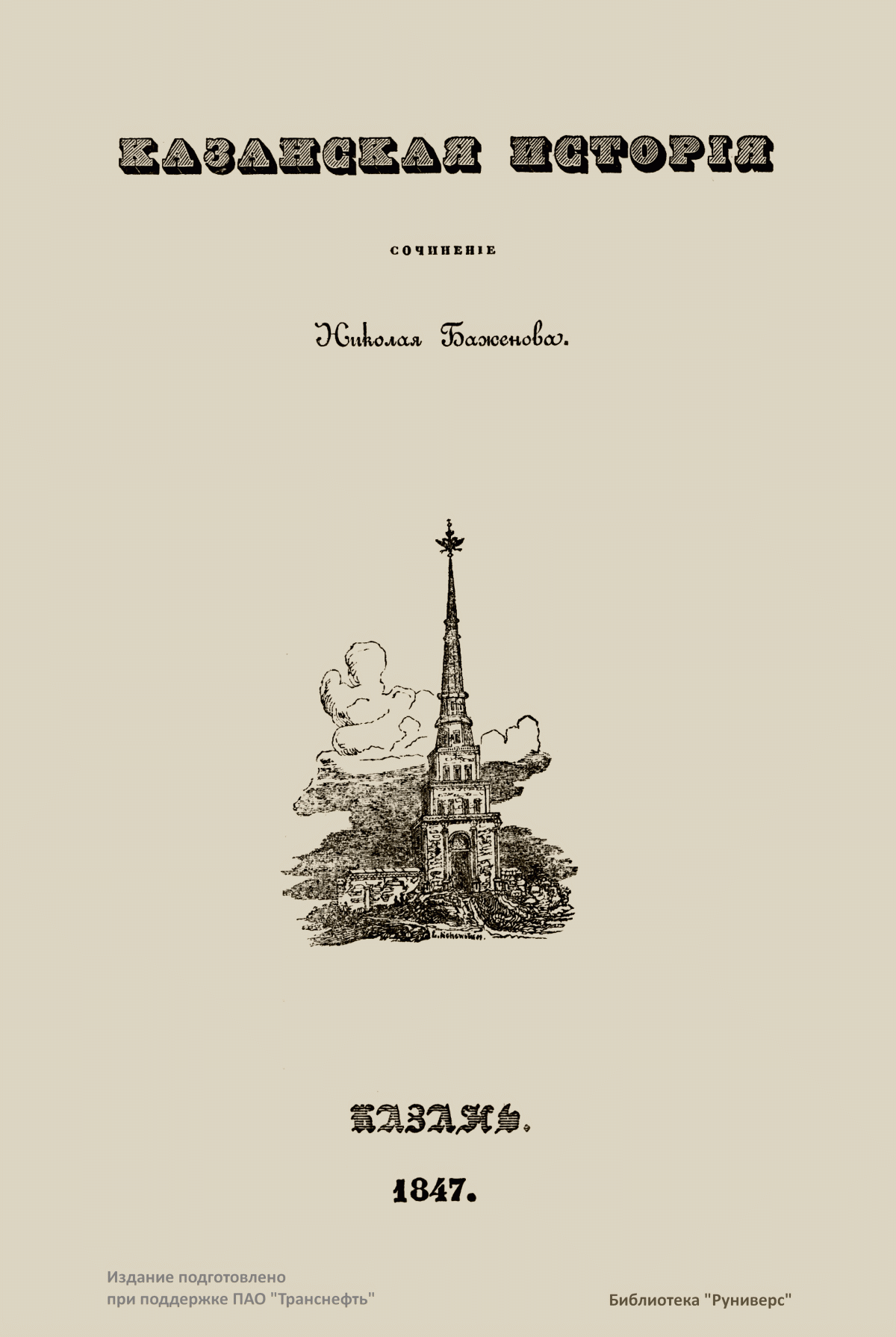 "Казанская история" Н. К. Баженова охватывает историю Казанского края от эпохи волжских булгар до 1847 года, издание до сих пор не утратило значение справочного при изучении местной истории. Книга состоит из трех частей. Часть первая описывает события от переселения болгар до покорения Казани, вторая — после покорения, третья часть — история современная, по 1847 год с топографическим и этнографическим описанием края.