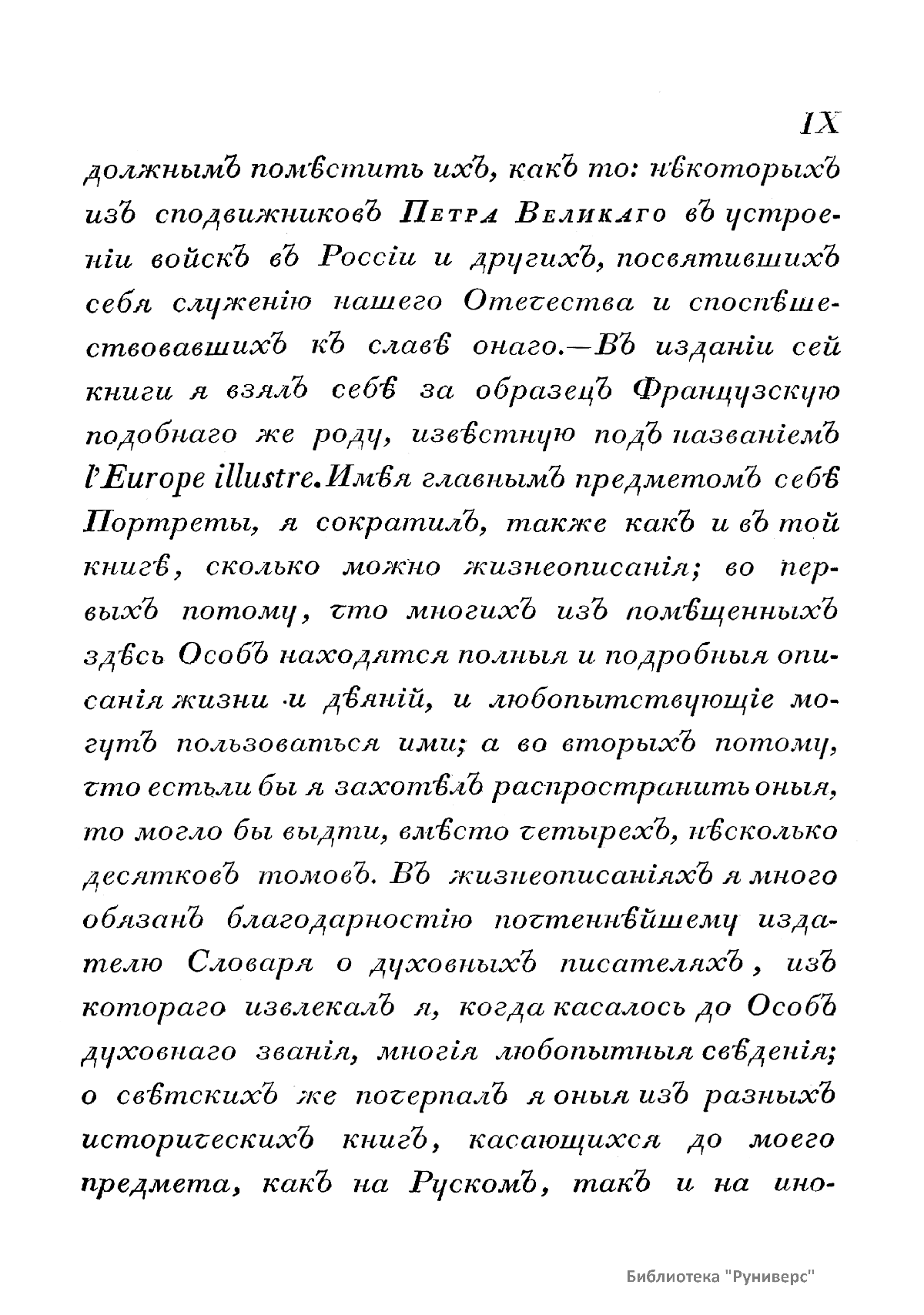 Собранiе портретовъ россiянъ, знаменитыхъ по своимъ дѣяниямъ воинскимъ и гражданскимъ, по учености, сочиненiямъ, дарованiямъ, или коихъ имена по чему другому сдѣлались извѣстными свѣту, въ хронологическомъ порядкѣ, по годамъ кончины, съ приложенiемъ ихъ краткихъ жизнеописанiй