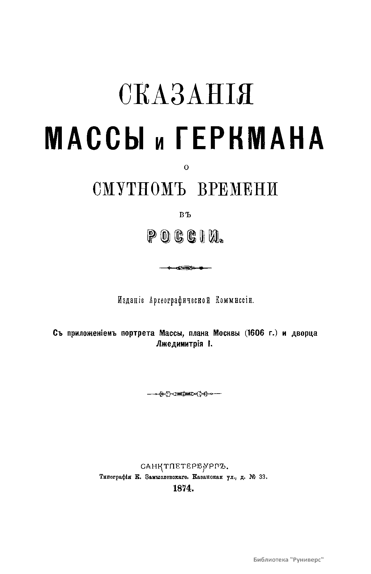 Сказанiя Массы и Геркмана о Смутномъ времени въ Россiи