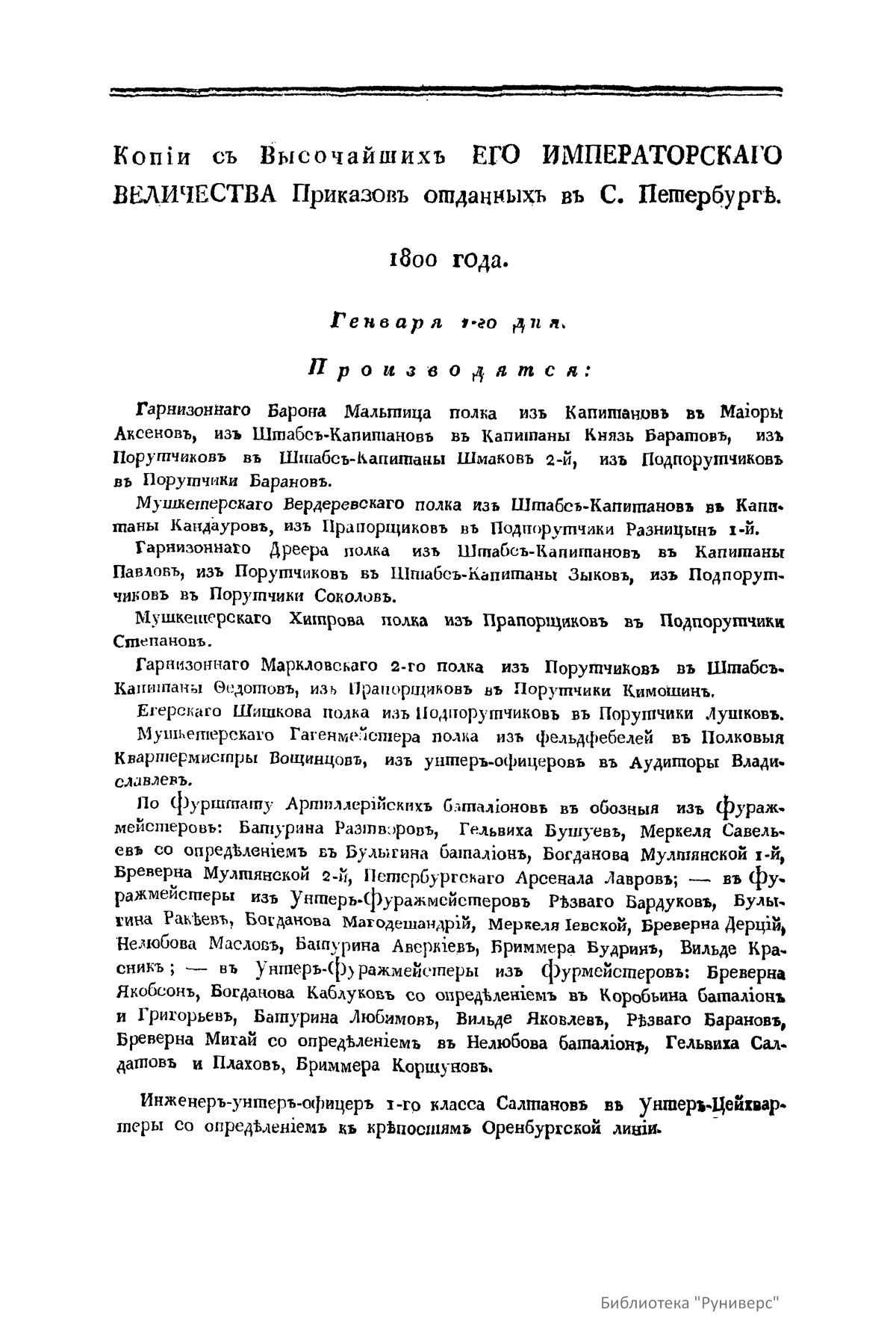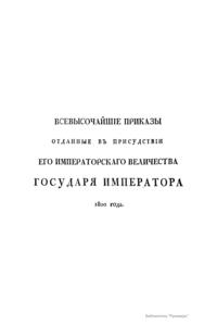 Всевысочайшие приказы, отданные в присутствии Его Императорского Величества Государя Императора, со вступления его на Всероссийкий престол. 1800
