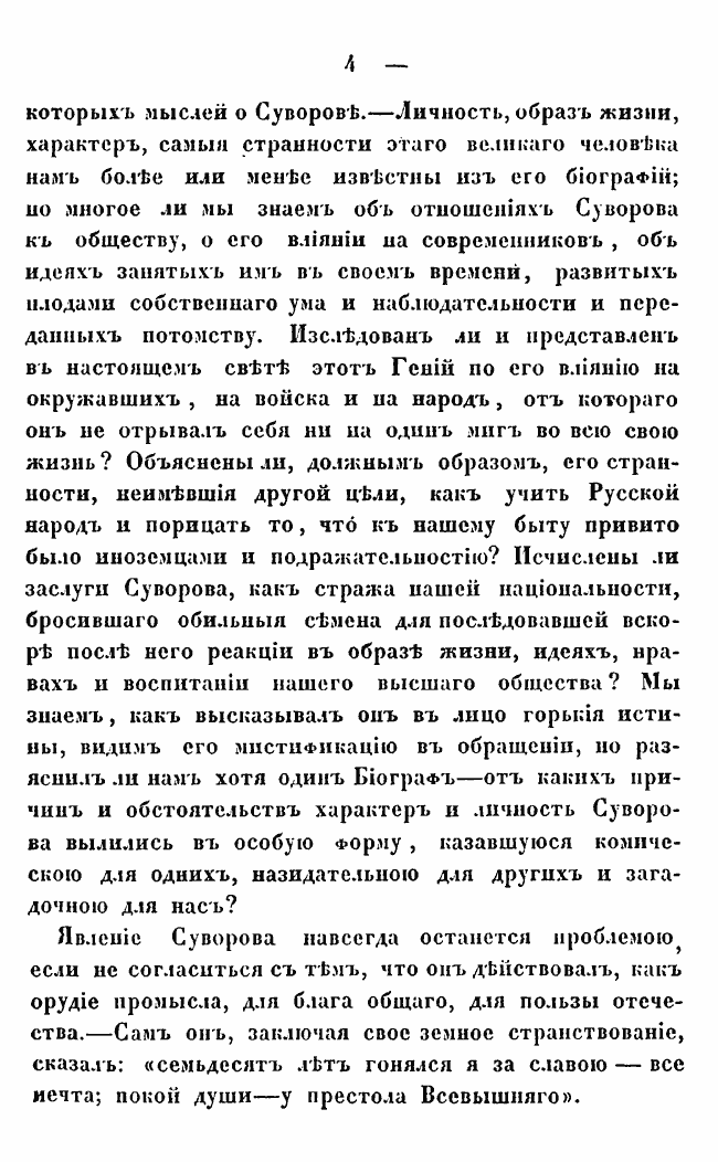 Автор пишет книгу, руководствуясь долгом «изучать отечественную историю… и иметь возможность знакомить своих соотечественников со славными событиями и великими мужами минувшей жизни России» Исследование опирается на материалы, найденные при разборе архива Военно-походной канцелярии графа Румянцева-Задунайского. Автор представляет в истинном виде и подробностях экспедицию А. В. Суворова на г. Туртукай, объясняет причины и цели действий полководца, а также их связь с общим ходом военных действий на нижнем и верхнем Дунае. Издание включает карту «План действий Суворова в первый поиск его на Туртукай».