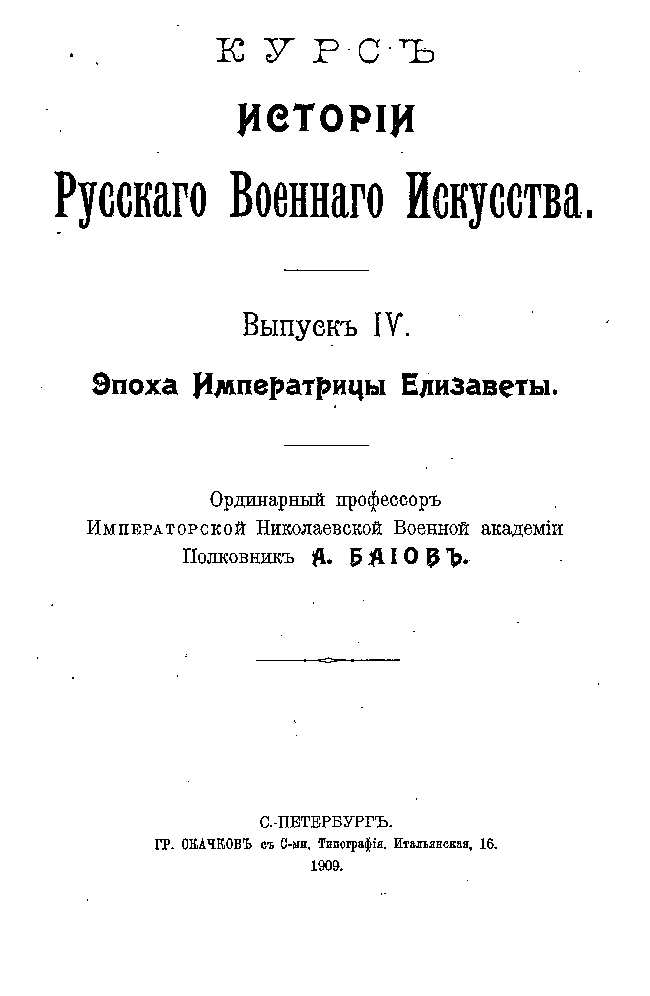 Курс истории русского военного искусства. Выпуск IV. Эпоха Императрицы Елизаветы.