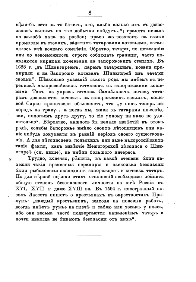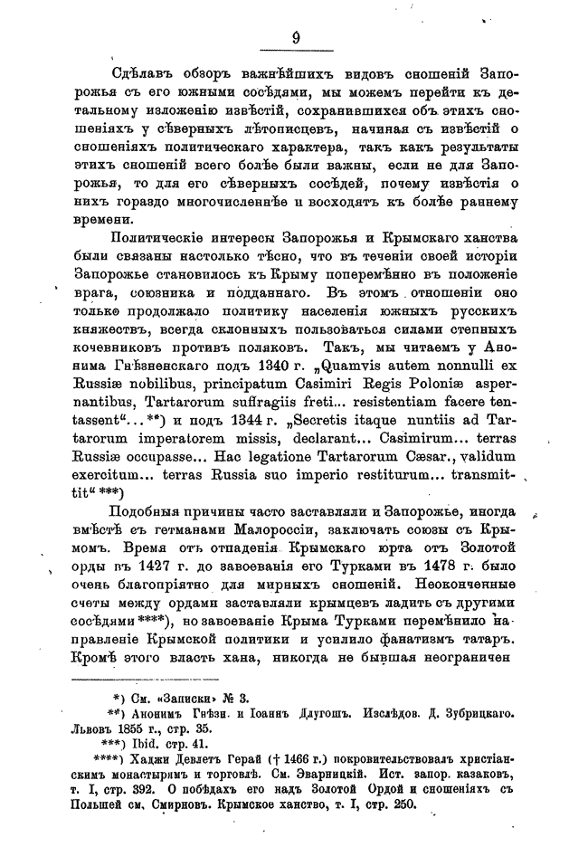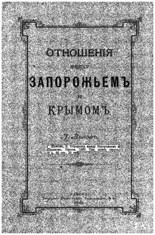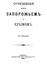 В книге «Отношенiя между Запорожьемъ и Крымомъ» повествуются об отношениях между Запорожьем и Крымом после татарского нашествия, факторах сближения (политических, экономических), также изложены с комметариями известия, сохранившиеся об этих отношениях.