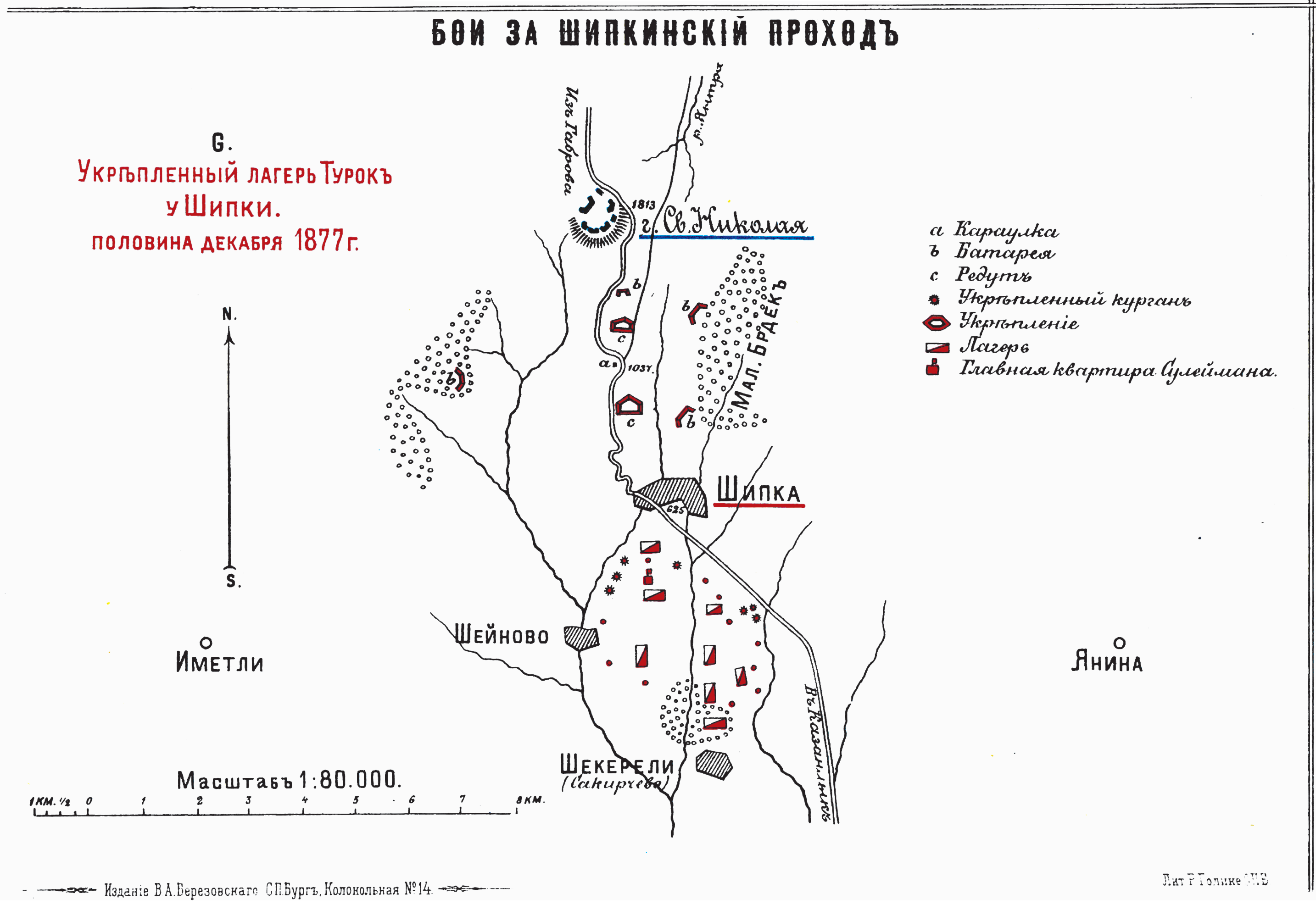 Бои за Шипкинский проход с 5 июля по 28 декабря 1877. G. Укрепленный лагерь Турок у Шипки. Половина декабря 1877 года
