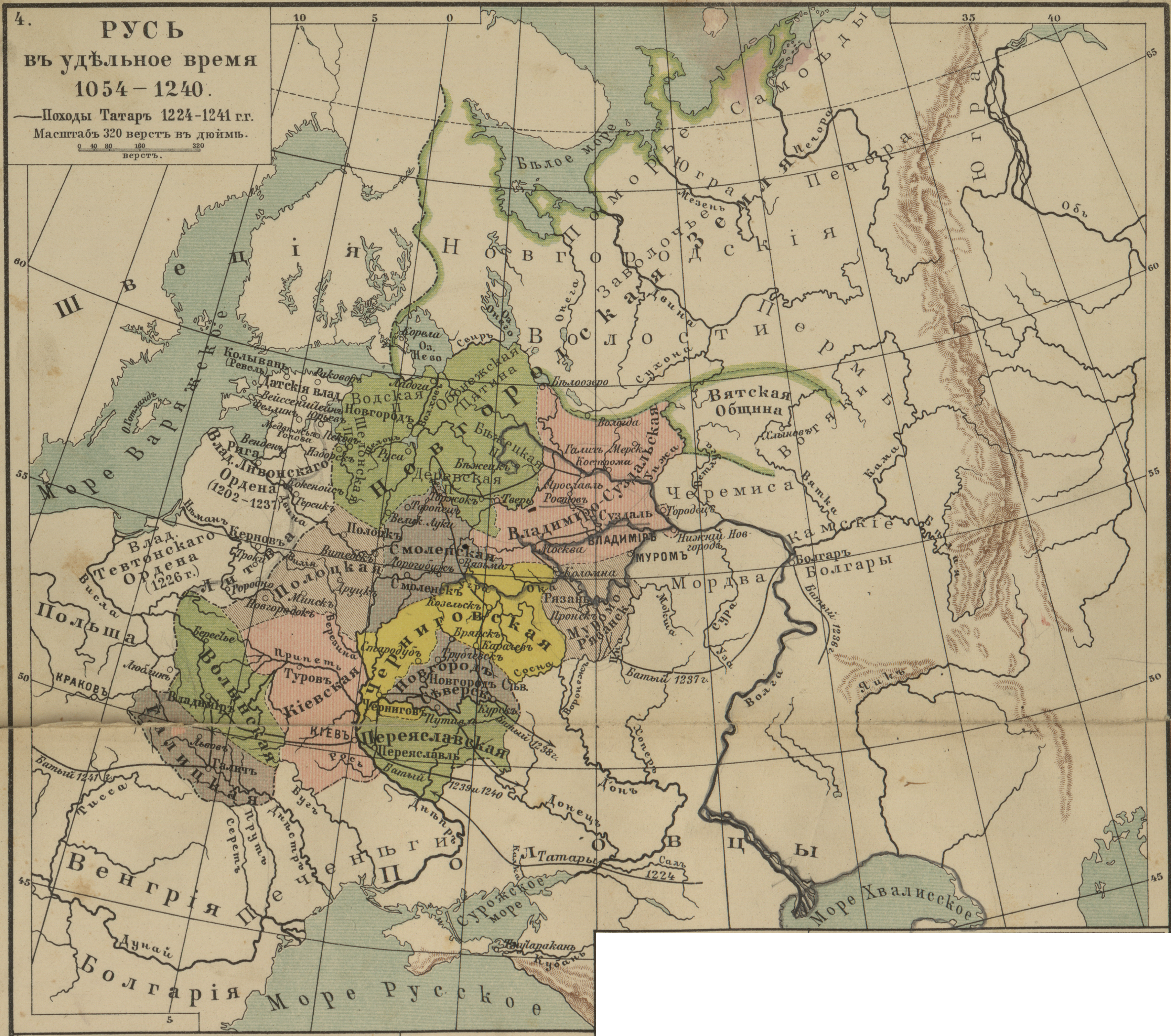 «Учебный Атлас по Русской Истории». СПб. 1910. Составитель барон Н. Н. Торнау. Учебный атлас по русской истории Торнау, состоящий из 29 карт, был составлен «применительно к наиболее распространенным из существующих учебников; на картах нанесены только те данные, которые в них встречаются» – повествуется в Предисловии к восьмому изданию «перепечатанного без перемен с четвертого». Атлас являлся обязательным пособие для всех средних учебных заведений Министерства Народного просвещения.