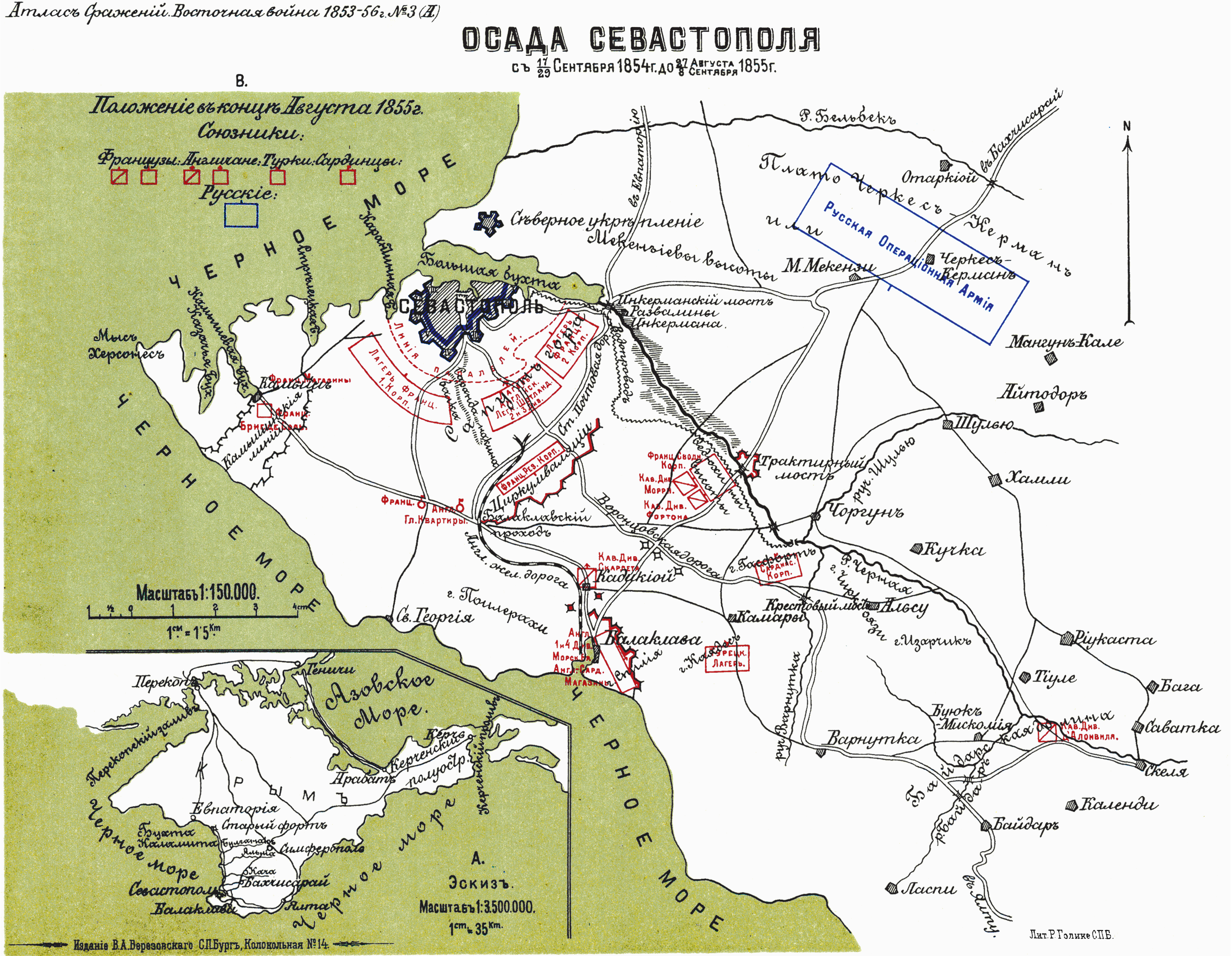 Осада Севастополя от 17 сентября 1854 года до 27 августа 1855 года. Положение в конец Августа 1855 года