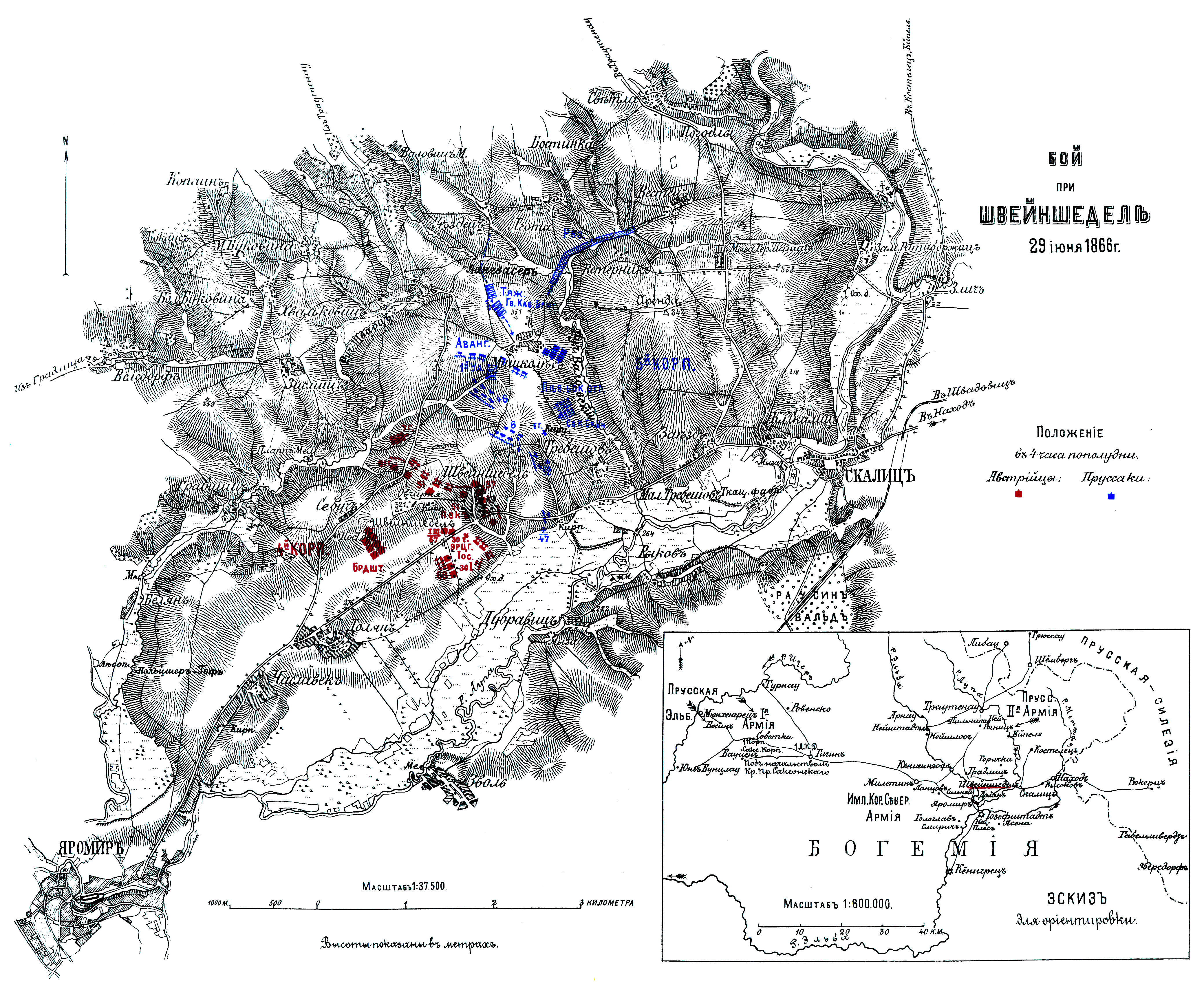 Бой при Швейншеделе 29 июня 1866 года. Положение в 4 часа пополудни