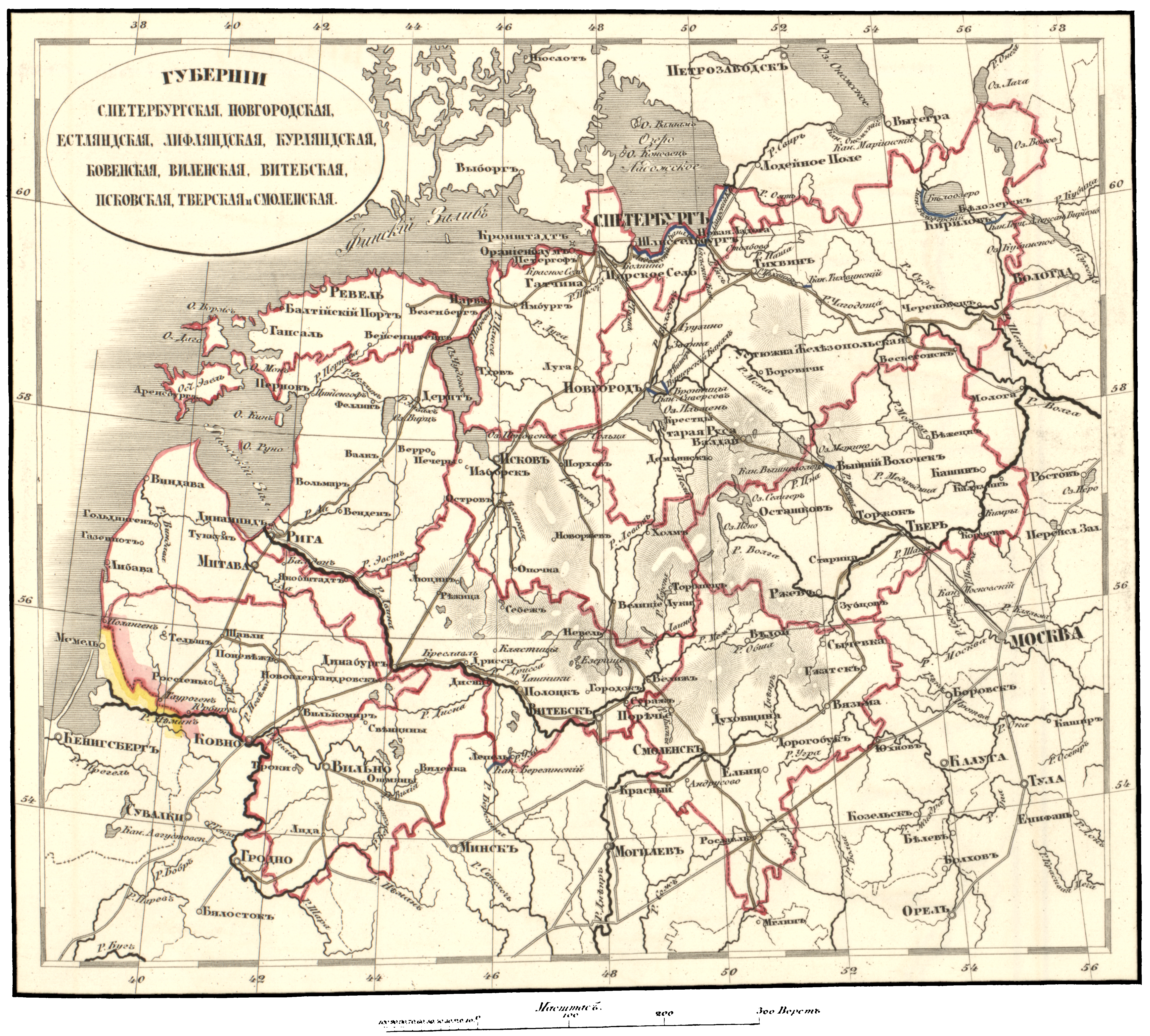 Губернии С.-Петербургская, Новгородская, Естляндская, Лифляндская, Курляндская, Ковенская, Виленская, Витебская, Псковская, Тверская и Смоленская