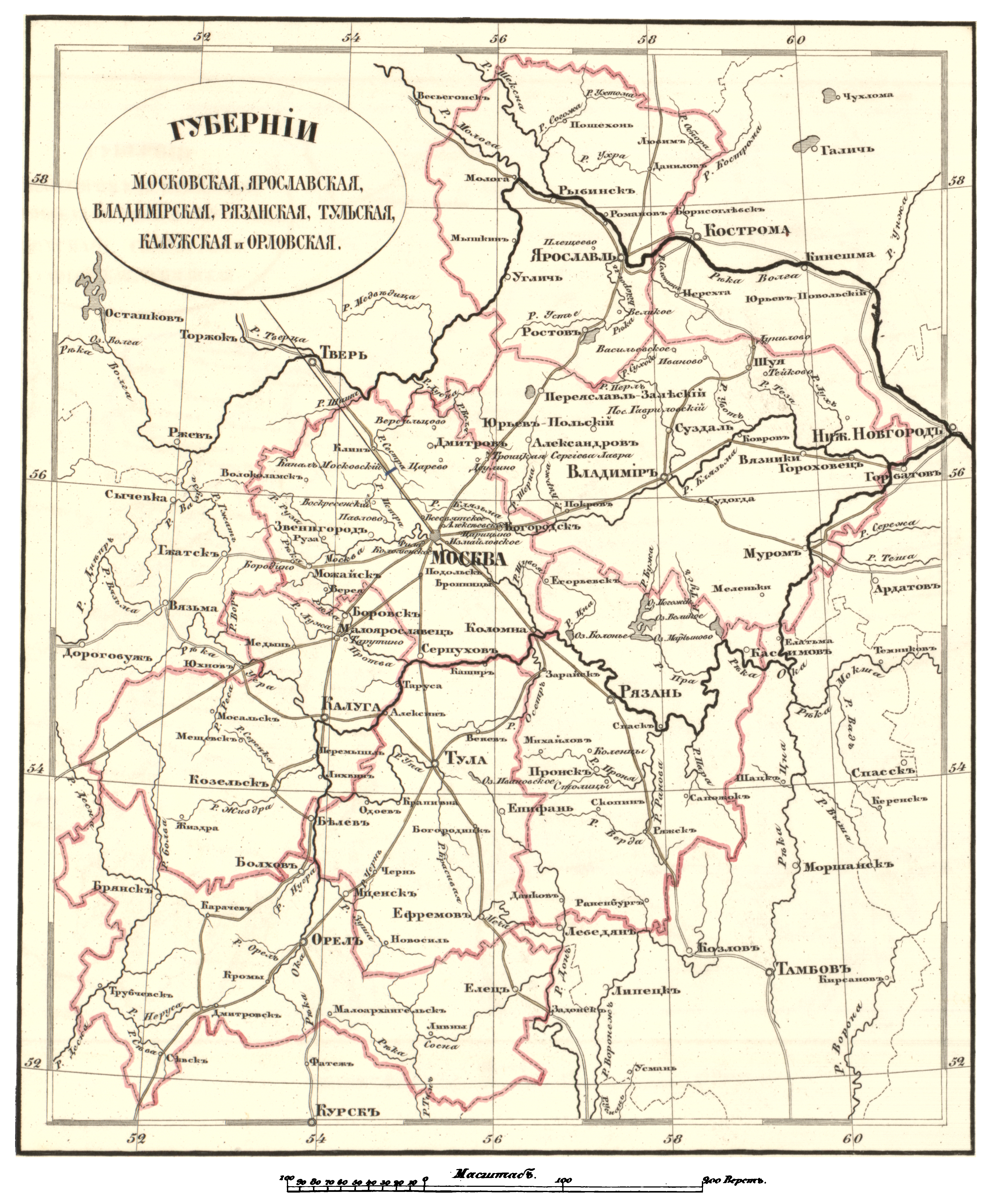 Губернии Московская, Ярославская, Владимирская, Рязанская, Тульская, Калужская и Орловская