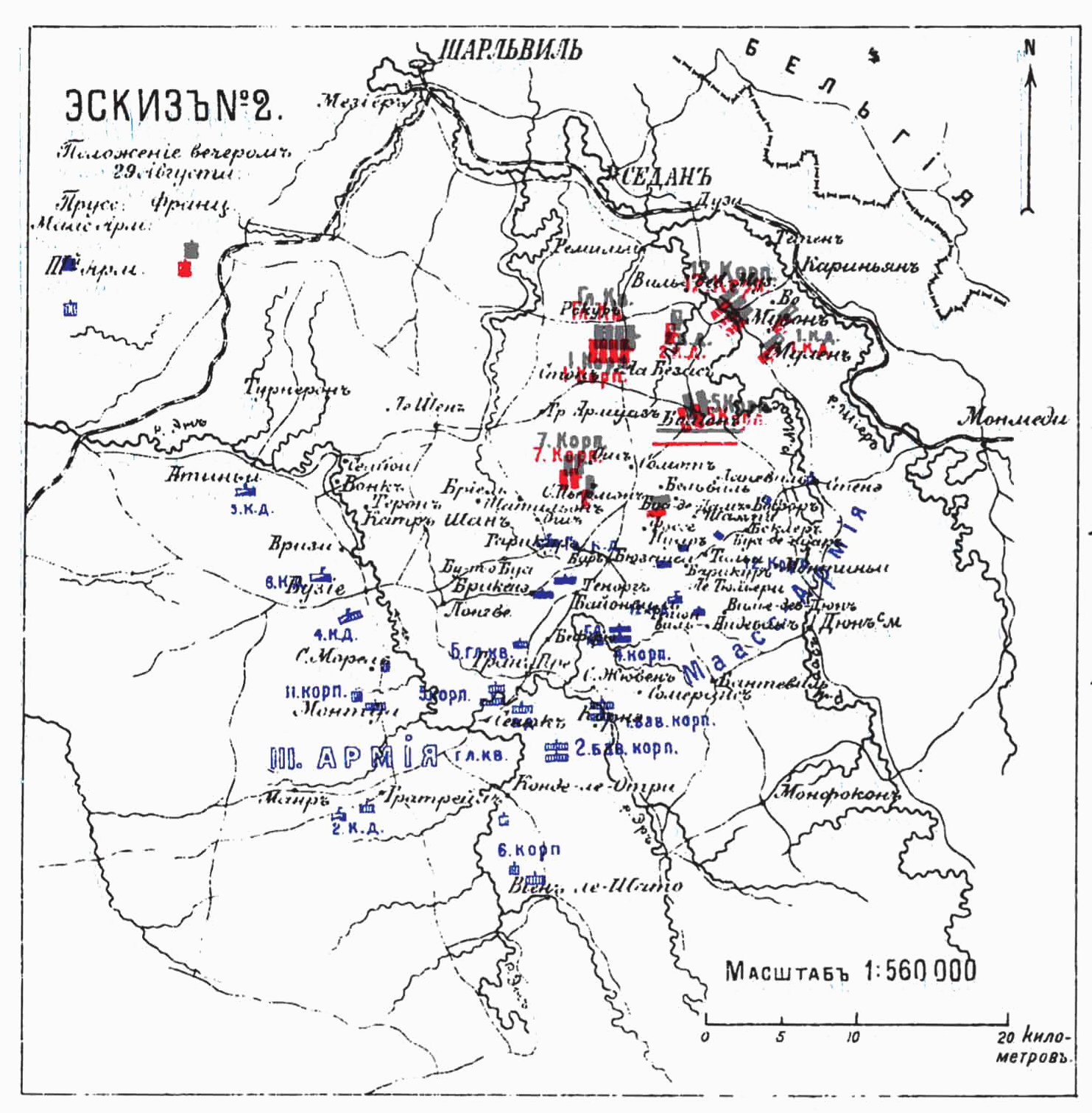 Сражение при Бомоне. 30 августа 1870. Эскиз №2. Положение вечером 29 августа