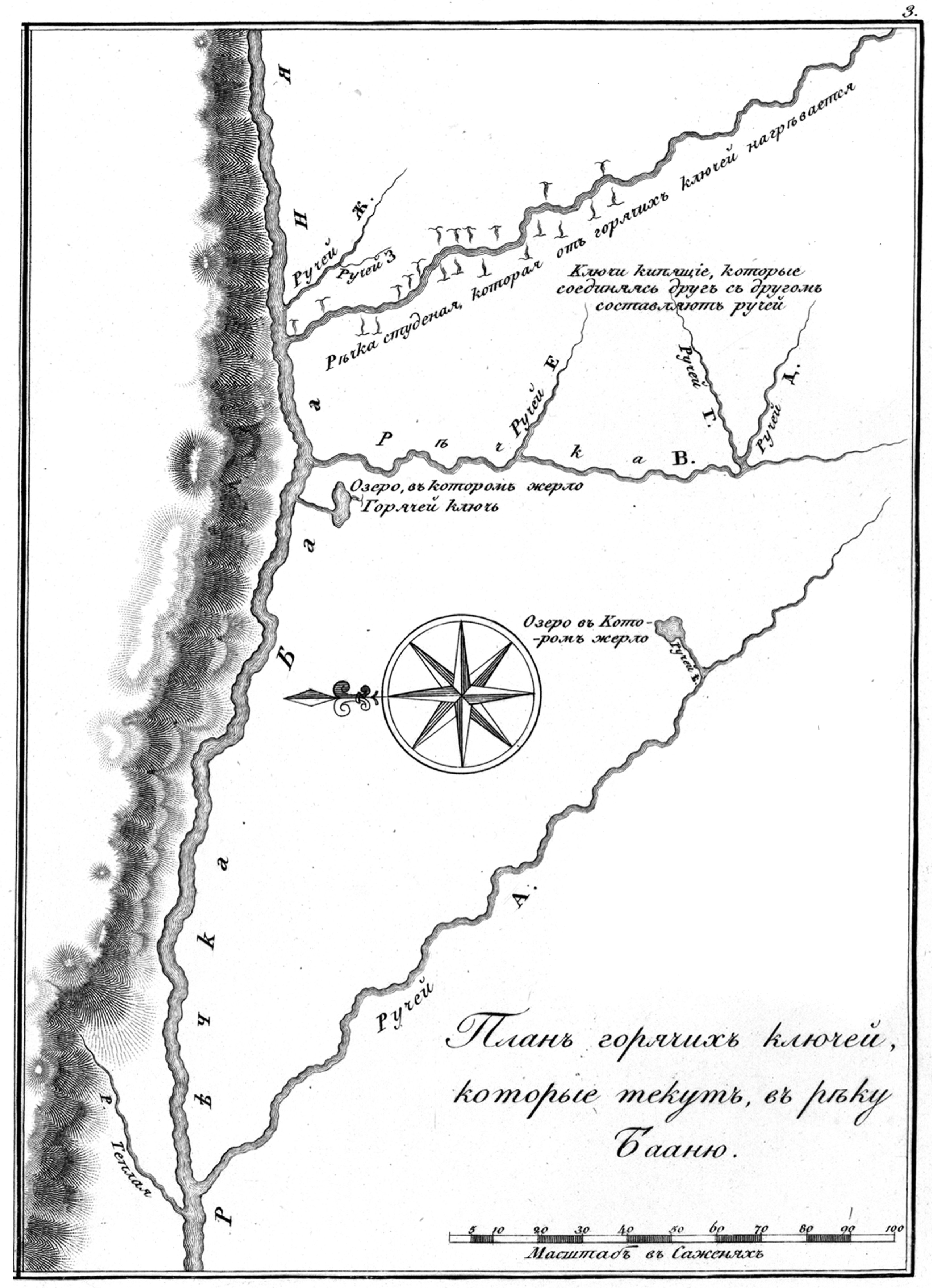 План горячих ключей, которые текут в реку Паужу