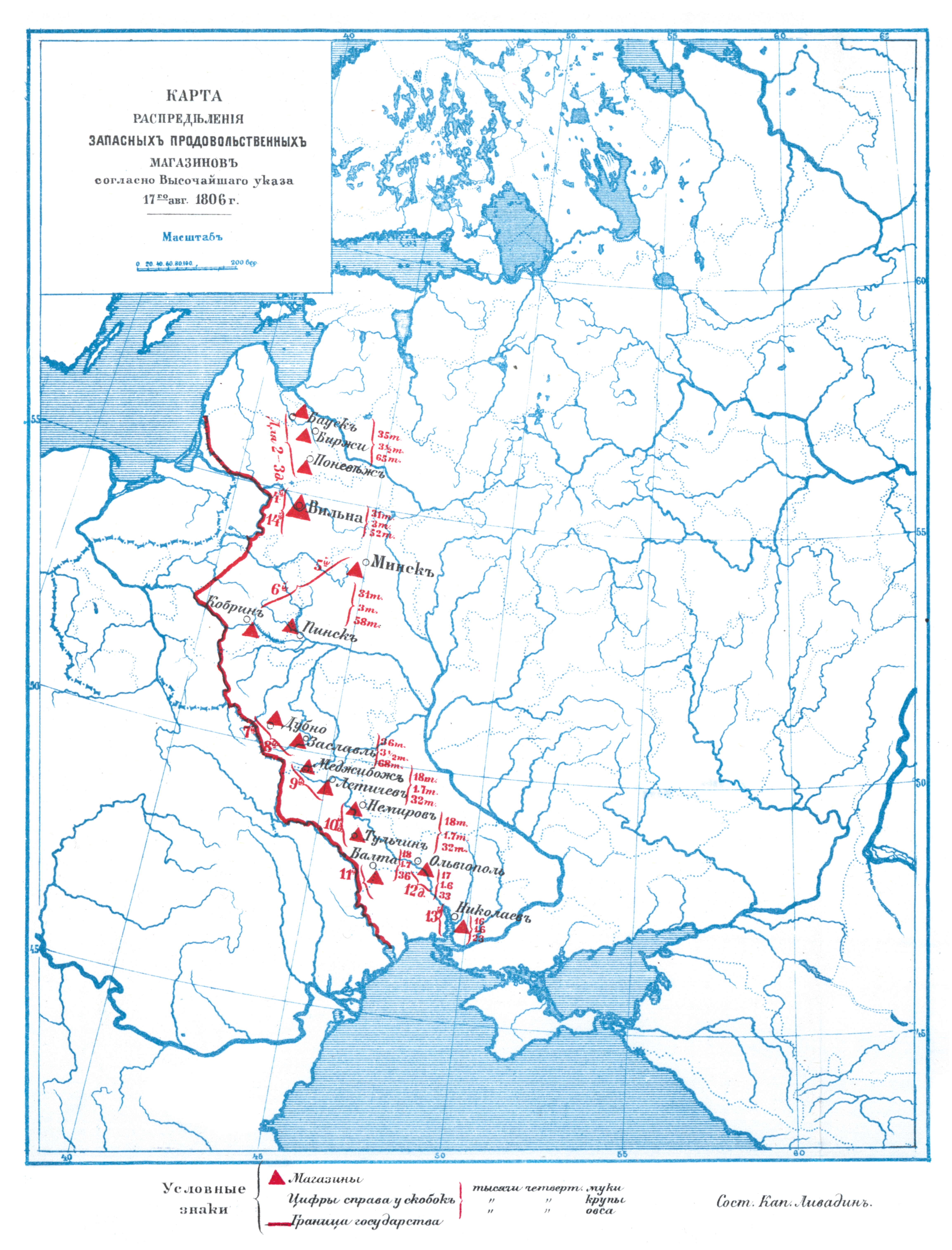 Распределение запасных продовольственных магазинов согласно Высочайшего указа 17 августа 1806 года