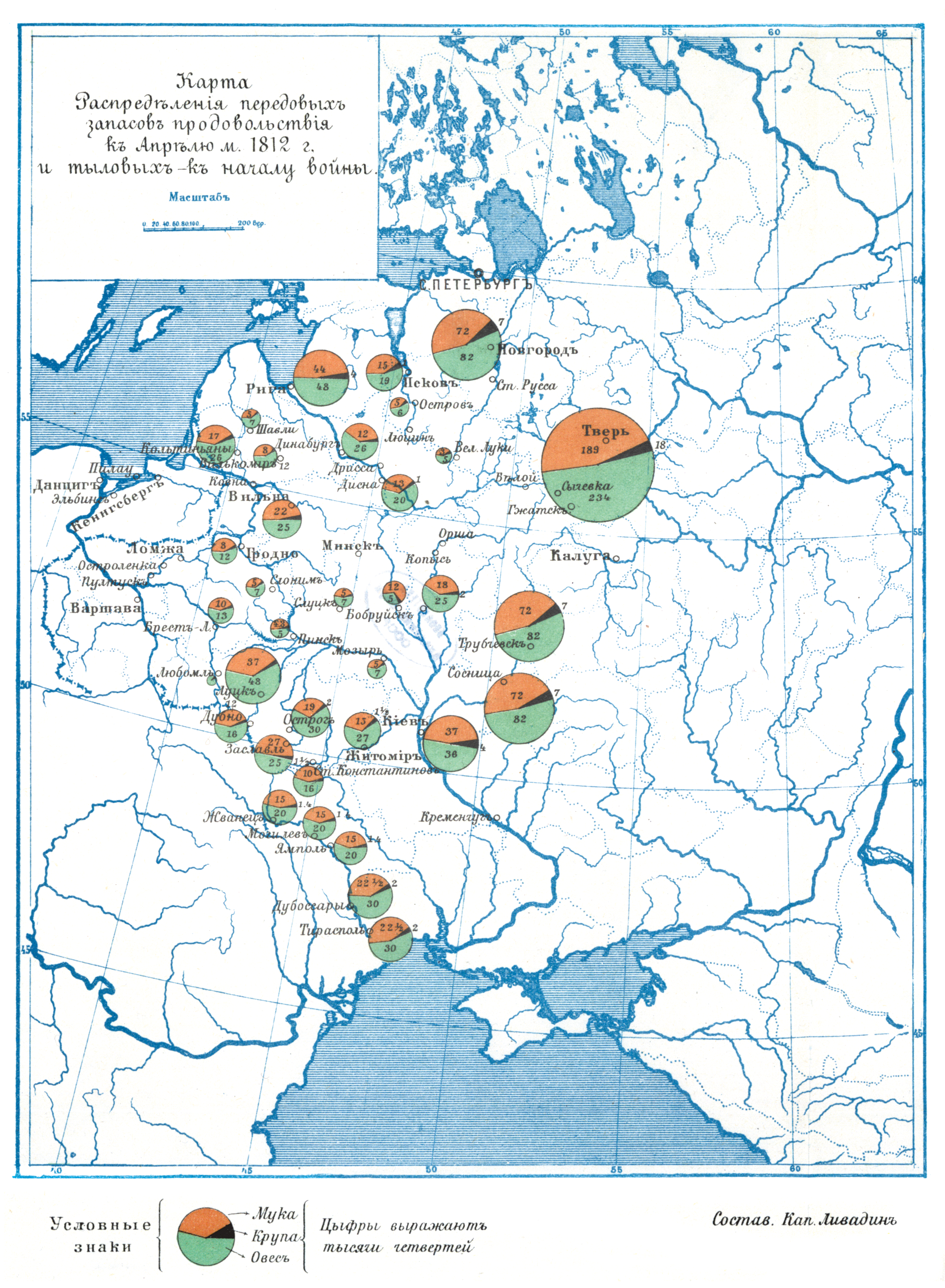 Распределение передовых запасов продовольствия к апрелю 1812 года и тыловых к началу войны