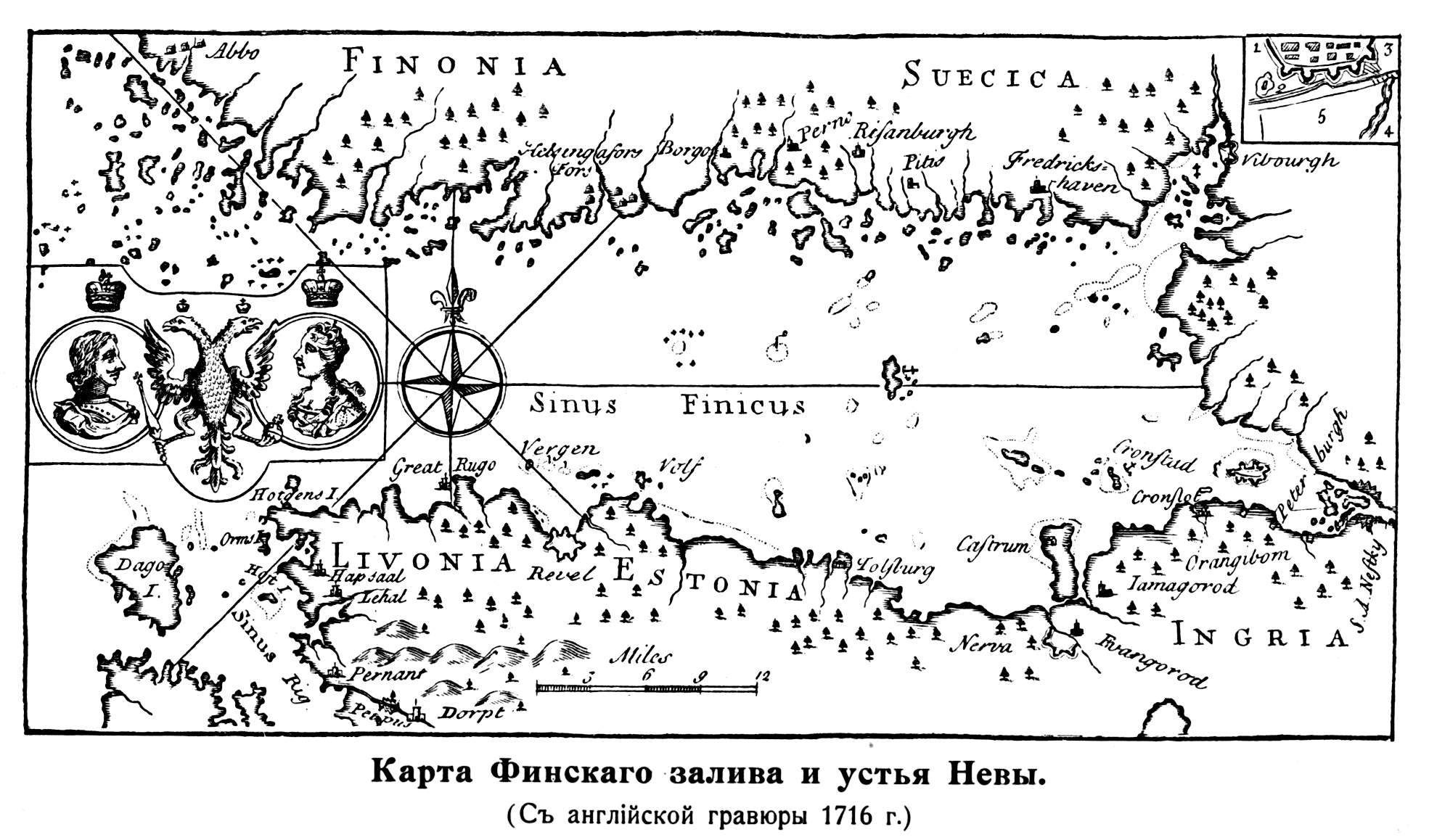 Финский залив и устье Невы (с английской гравюры 1716 года)