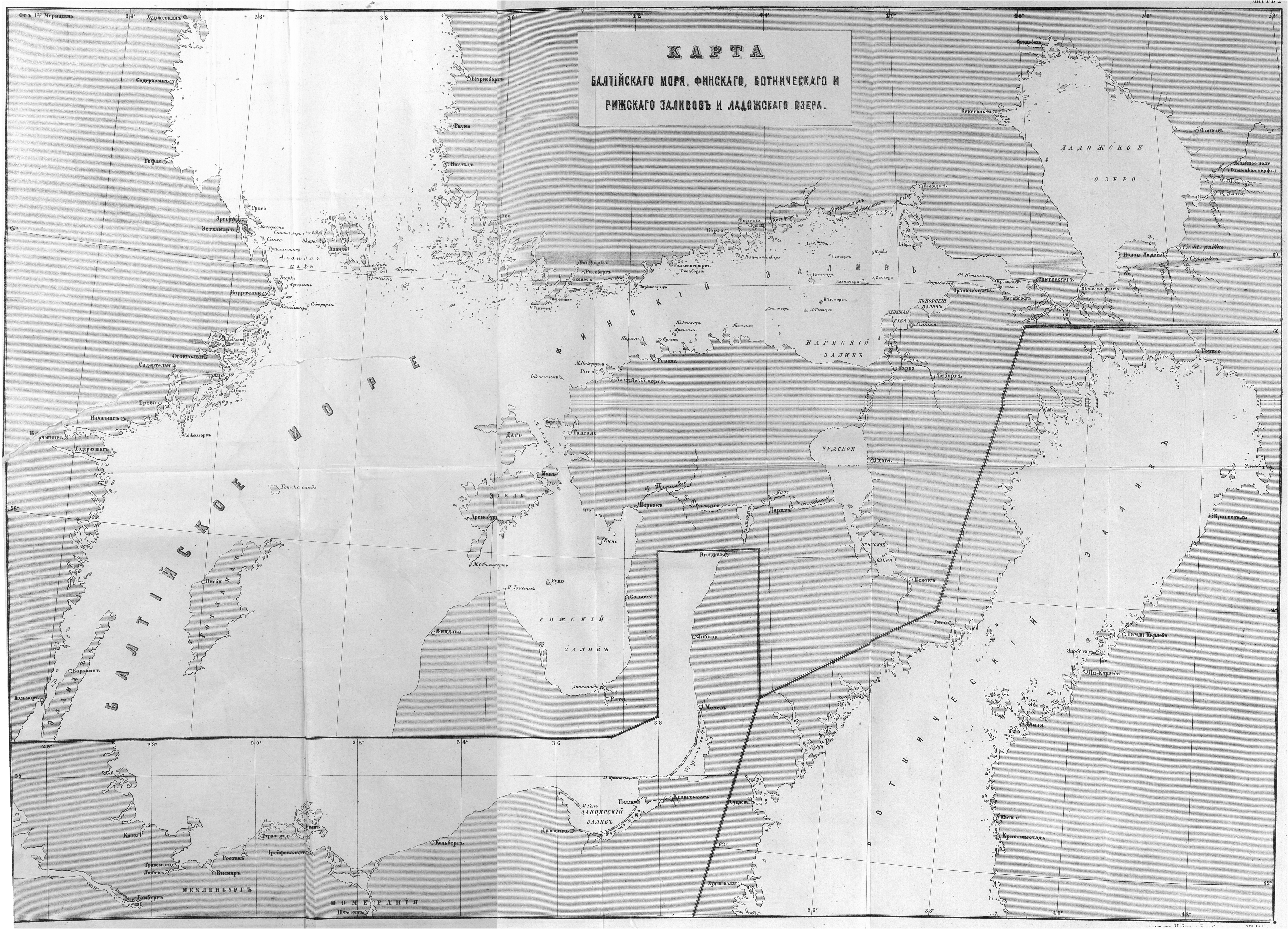 Карта Балтийского моря, Финского, Ботнического и Рижского заливов и Ладожского озера.