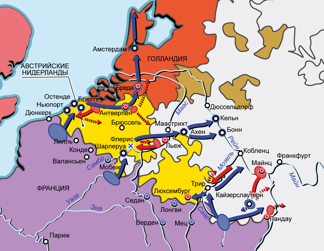Первая антифранцузская коалиция 1792–1795 гг. Карта кампаний 1794 г. на Рейне и в Бельгии и Нидерландах