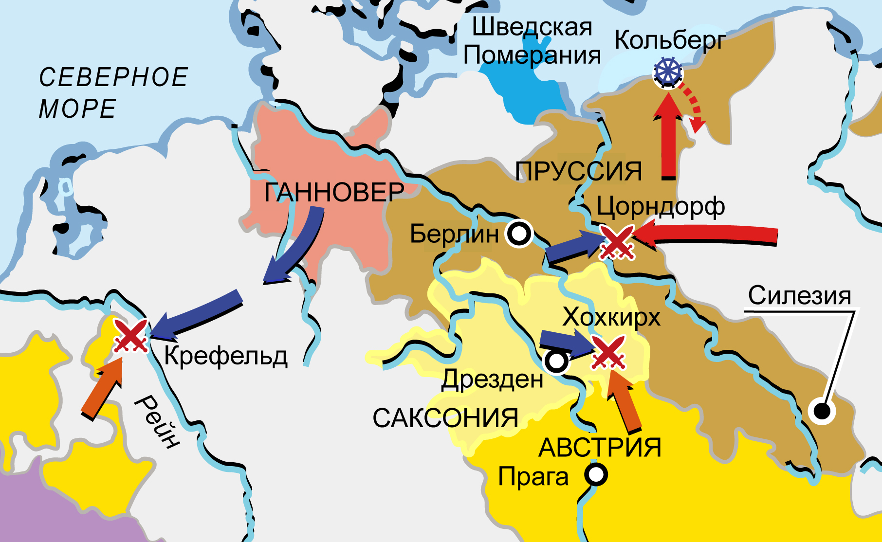 Моравия, Силезия, Саксония, Гессен, Вестфалия, Померания