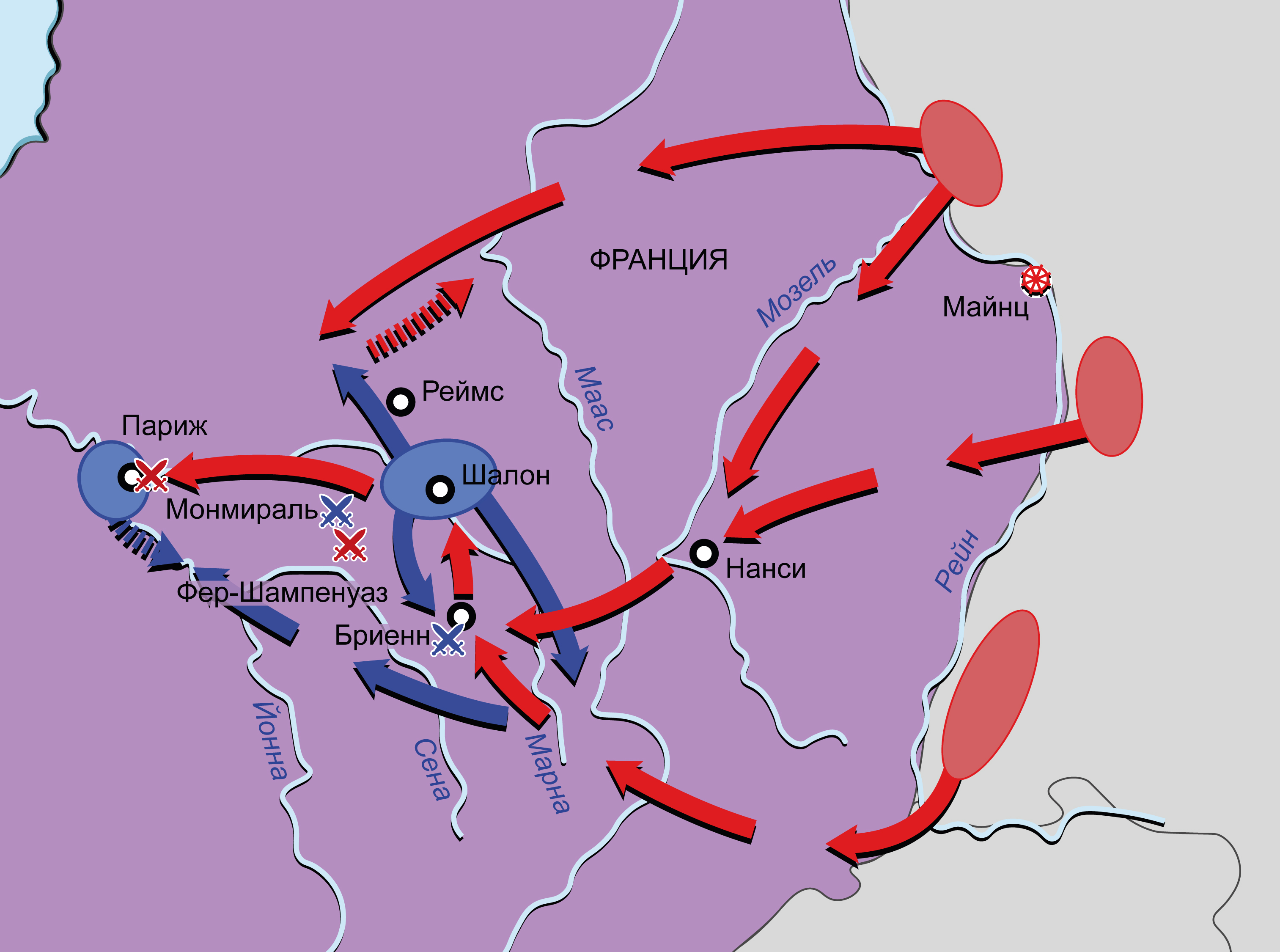Шестая антифранцузская коалиция 1812–1814 гг. Карта кампании во Франции в 1813-1814 гг.