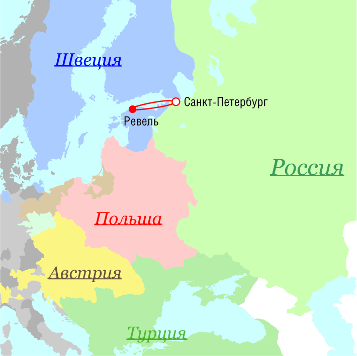 Маршрут поездок Петра I - 1699 г.