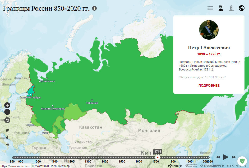 «Руниверс» совместно с Лабораторией исторической геоинформатики Института всеобщей истории РАН и компанией NextGIS представляет проект «Границы России 850–2020 гг.»