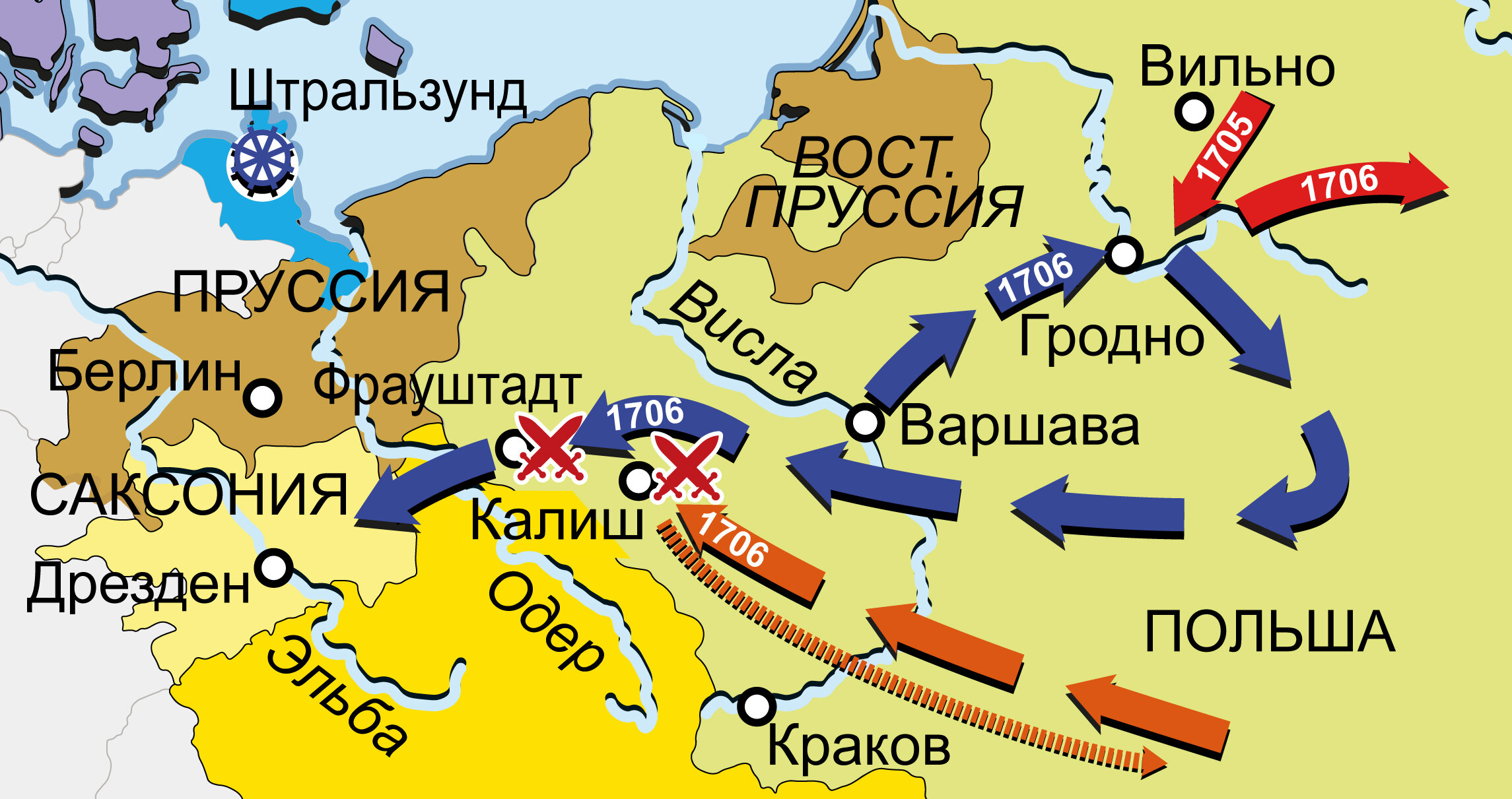 Северная война 1700-1721. Карта кампаний 1705–1706 гг. Действия в Польше