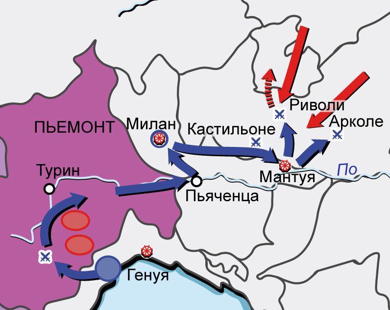 Первая антифранцузская коалиция 1792–1795 гг. Карта кампаний 1796 г. в Северной Италии