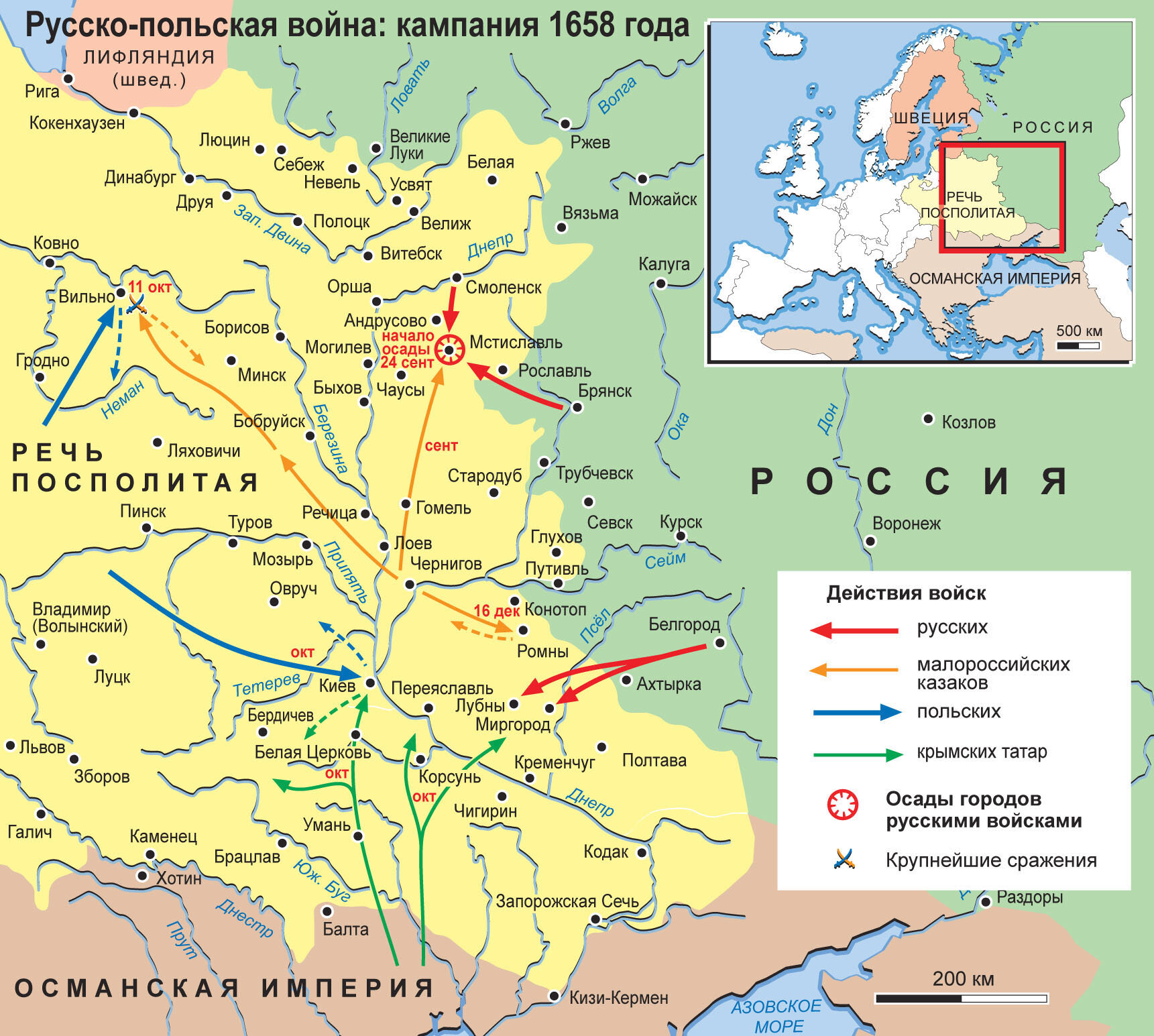 Карта: Русско-польская война 1654 – 1667. Кампания 1658 г.