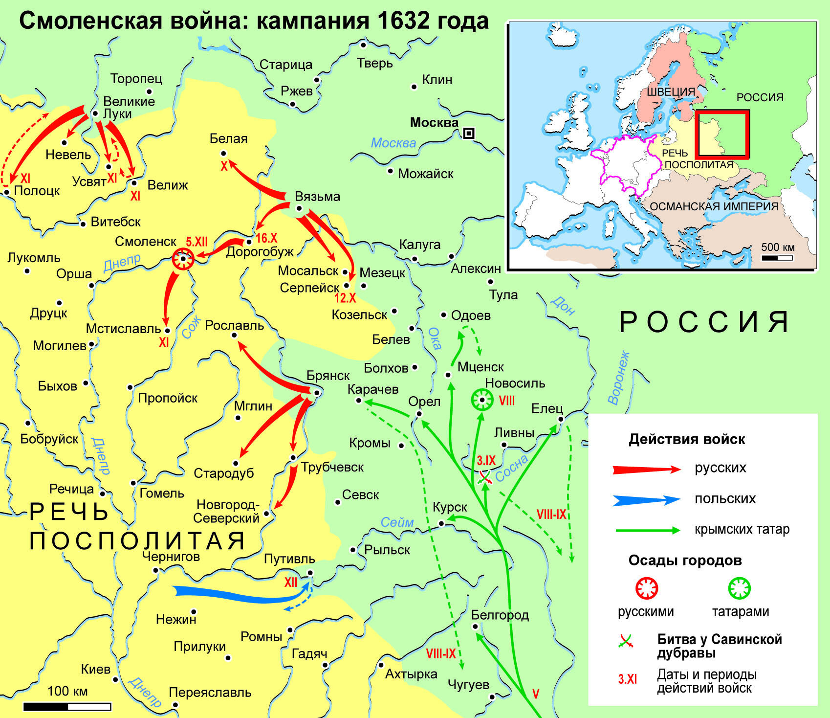 Карта: Русско-польская (Смоленская) война 1632—1634 гг. Кампания 1632 г.
