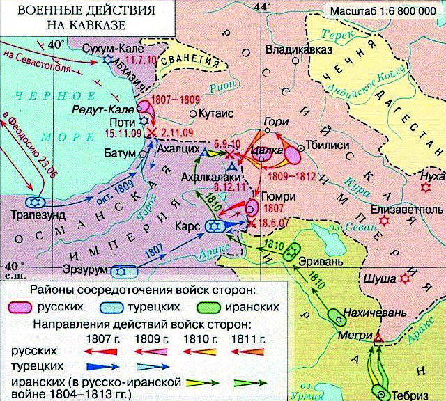 Карта Русско-турецкой войны 1806 – 1812 гг. Кавказский театр.